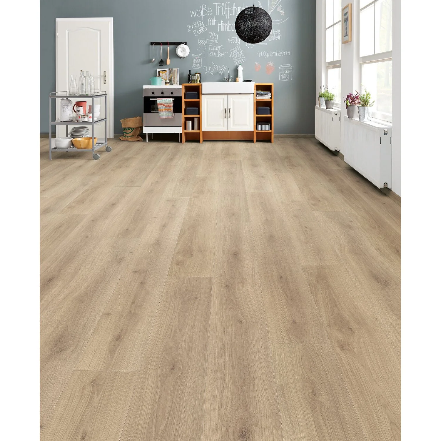 Die Nutzungsklasse 23/32 ist sowohl für Wohnräume mit hoher als auch für gewerbliche Räume mit mittlerer Nutzung geeignet. Somit kann der Laminatboden unter anderem in einem Büro verlegt werden. Auf Fussbodenheizungen lässt sich der Laminatboden ebenfalls einwandfrei verwenden. Der technische Aufbau des Bodens gewährleistet, dass Wärme sehr gut durchdringt. So sparen Sie Heizkosten und geniessen eine angenehm dosierte Fusswärme während der Heizperiode. Zudem besticht der Boden durch seine grosszügige Optik mit 2,2 m Dielenlänge und 24,3 cm Dielenbreite.