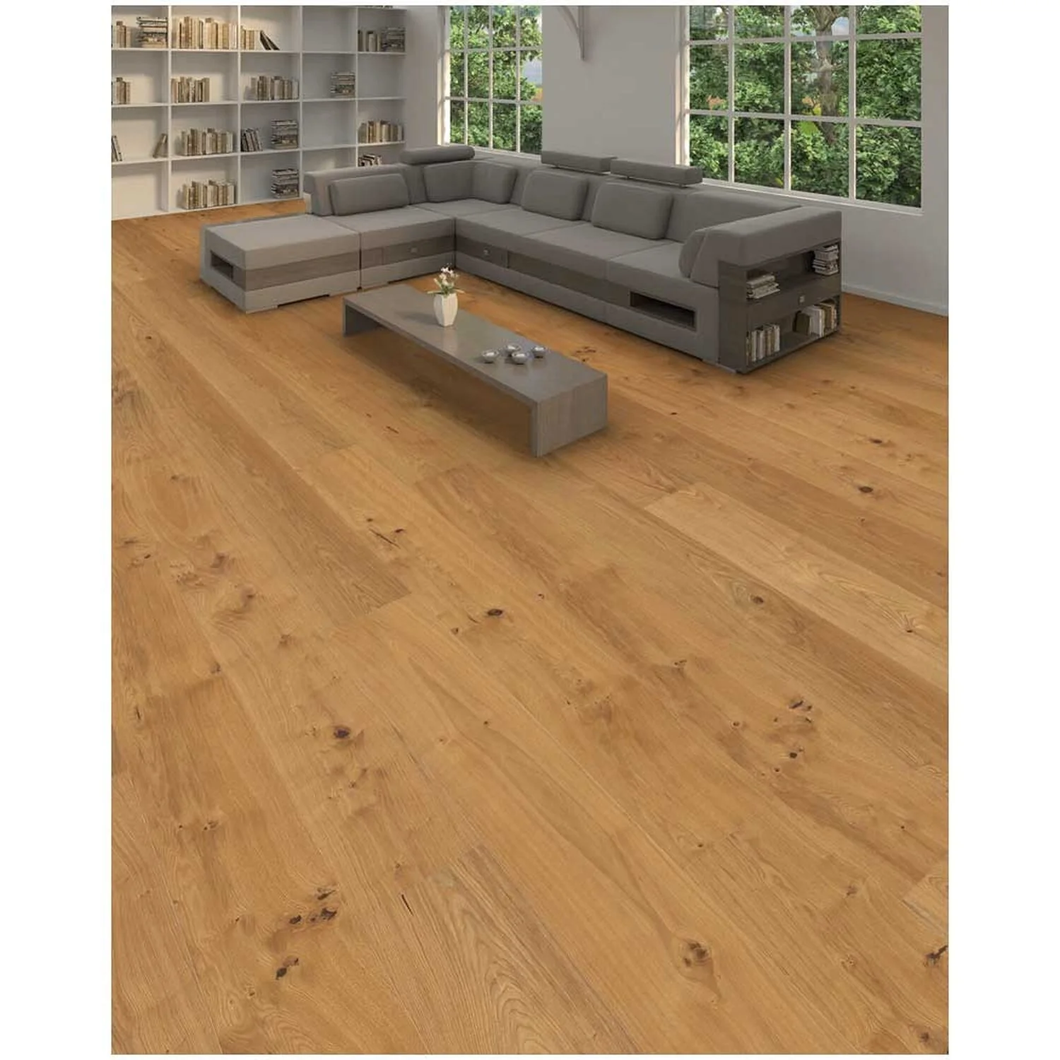 Der Living by Haro Parkettboden XL Eiche mit NaturÖl zeichnet sich durch seine elegante Landhausdielen-Optik aus, welche sich ideal in jeden Wohnbereich einfügt und ein harmonisches, unbeschwertes Ambiente schafft. Der grosszügige und beeindruckende Premiumboden für Do-it-yourselfer ist durch den Mehrschichtenaufbau formstabil und passgenau. Dabei beträgt die Edelholznutzschicht ca. 2,5 mm und kann abgeschliffen sowie renoviert werden. Des Weiteren sorgt die einfache Klickverbindung für eine leichte und schnelle Verlegung, die auch auf Fussbodenheizungen möglich ist. Zudem ist der Boden pflegeleicht, hygienisch und auch für Allergiker geeignet. Das Parkett ist made in Germany. Wir behalten uns vor, eine Lage pro Paket zu liefern, die unter 2 m liegen.