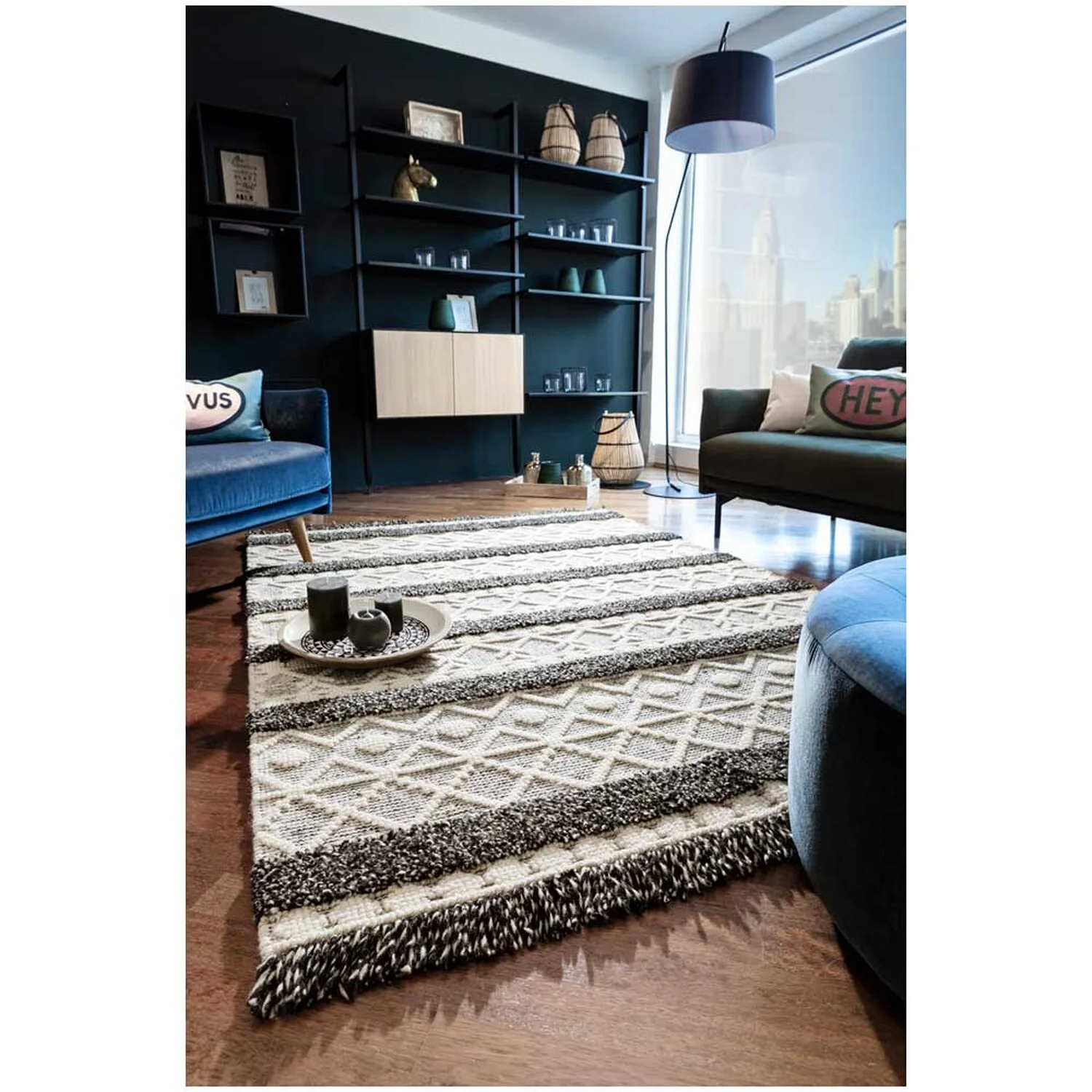Folgen Sie dem Hygge-Trend und verschönern Sie Ihren Wohnbereich mit dem Teppich Fano von Luxor Living. Der dänische Begriff Hygge bedeutet Gemütlichkeit und genau dies beschreibt den Handwebteppich Fano am besten. Das Rautendesign des Teppichs ist sehr schlicht und klassisch. Den Gemütlichkeitsfaktor strahlt der Webteppich durch die verarbeiteten Naturmaterialien aus. Überzeugen Sie sich selbst und holen Sie sich den Hygge-Trend nach Hause. Der Teppich Fano besteht zu 100 % aus Wolle.