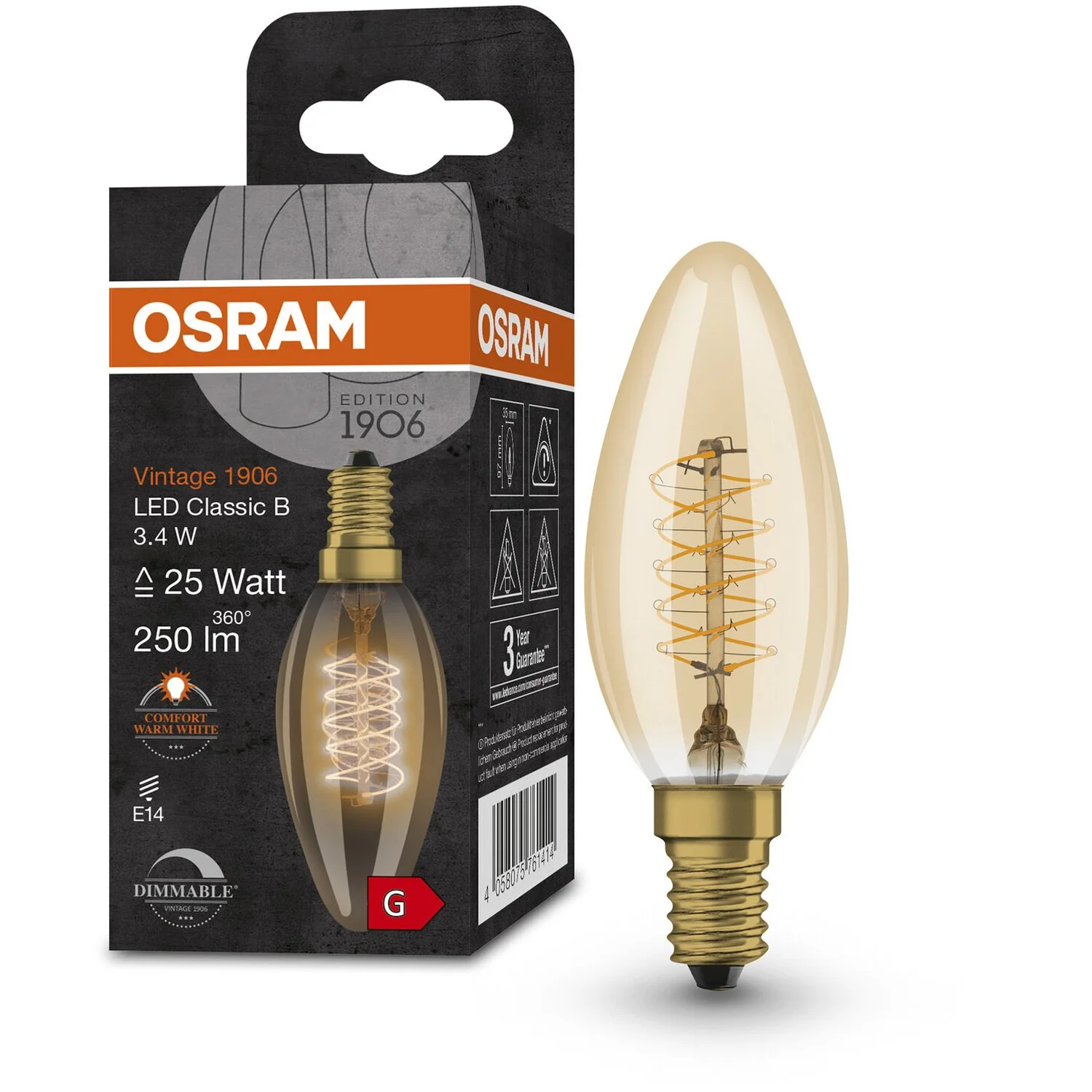 Die lange Lebensdauer von 15’000 h zeichnet das Osram LED-Leuchtmittel in Kerzenform mit E14-Fassung aus.