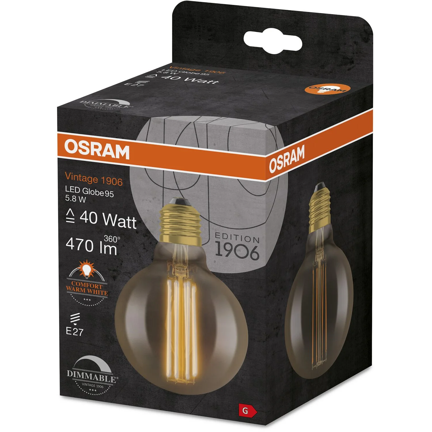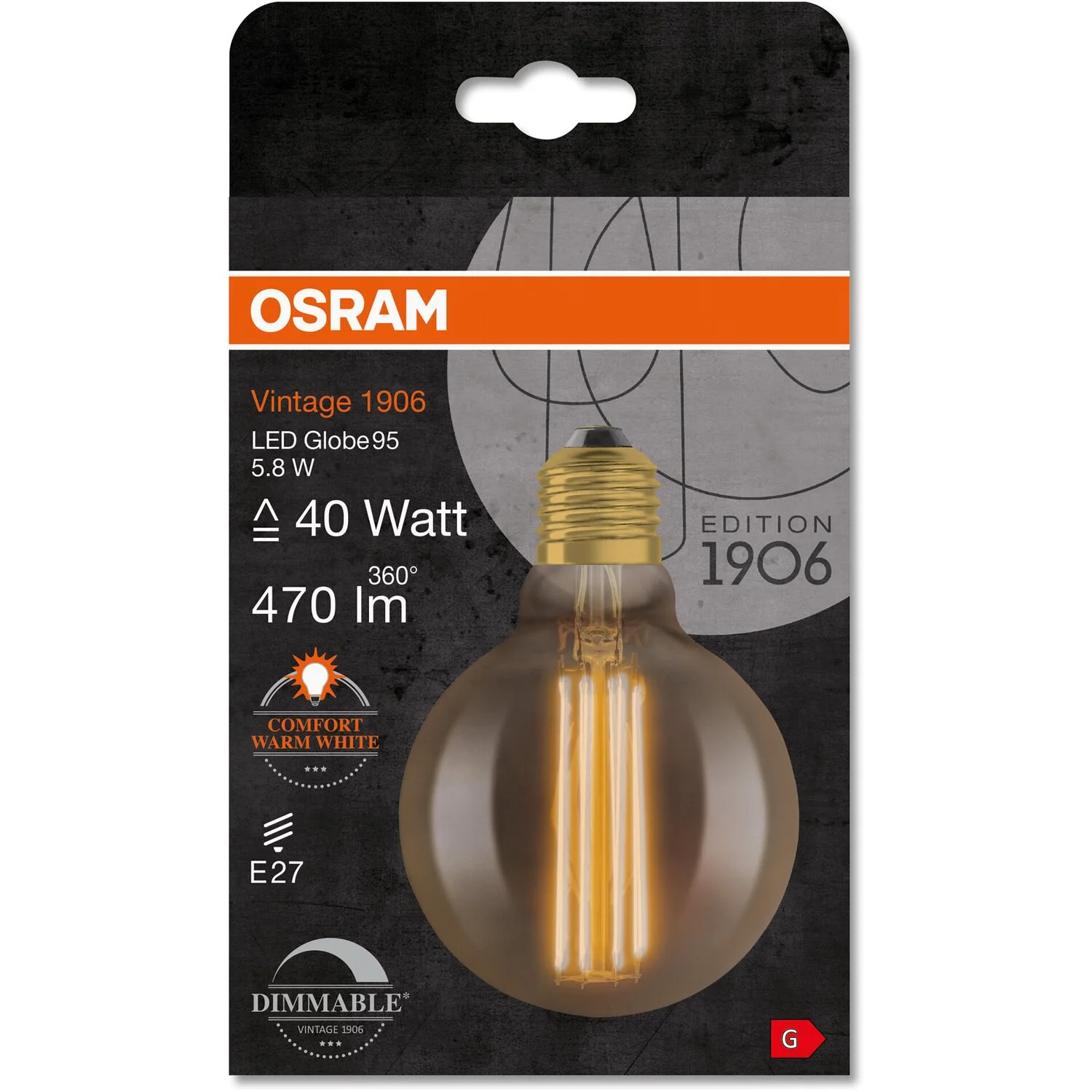 Die lange Lebensdauer von 15’000 h zeichnet das Osram LED-Leuchtmittel in Globeform mit E27-Fassung aus.