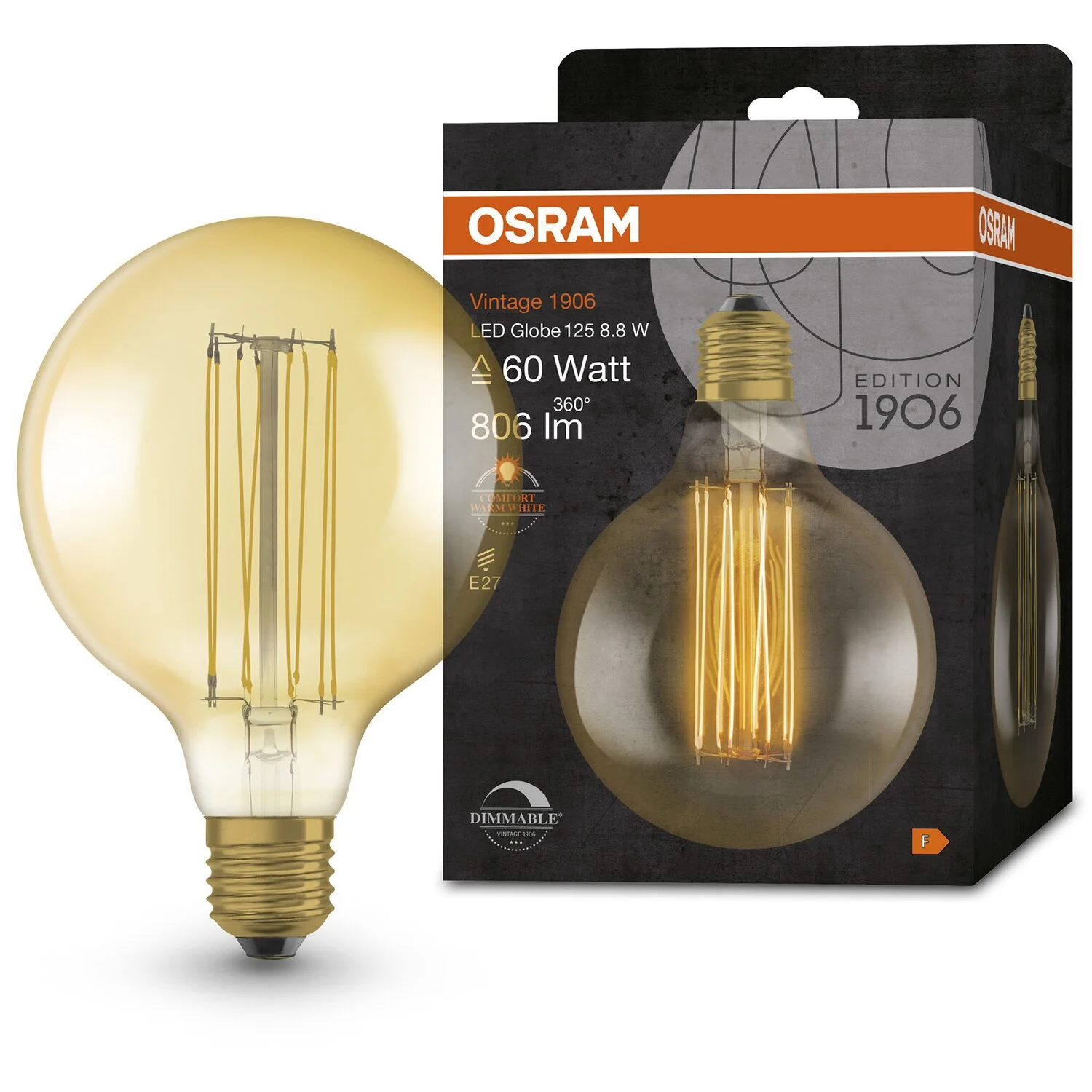 Die lange Lebensdauer von 15’000 h zeichnet das Osram LED-Leuchtmittel in Globeform mit E27-Fassung aus.