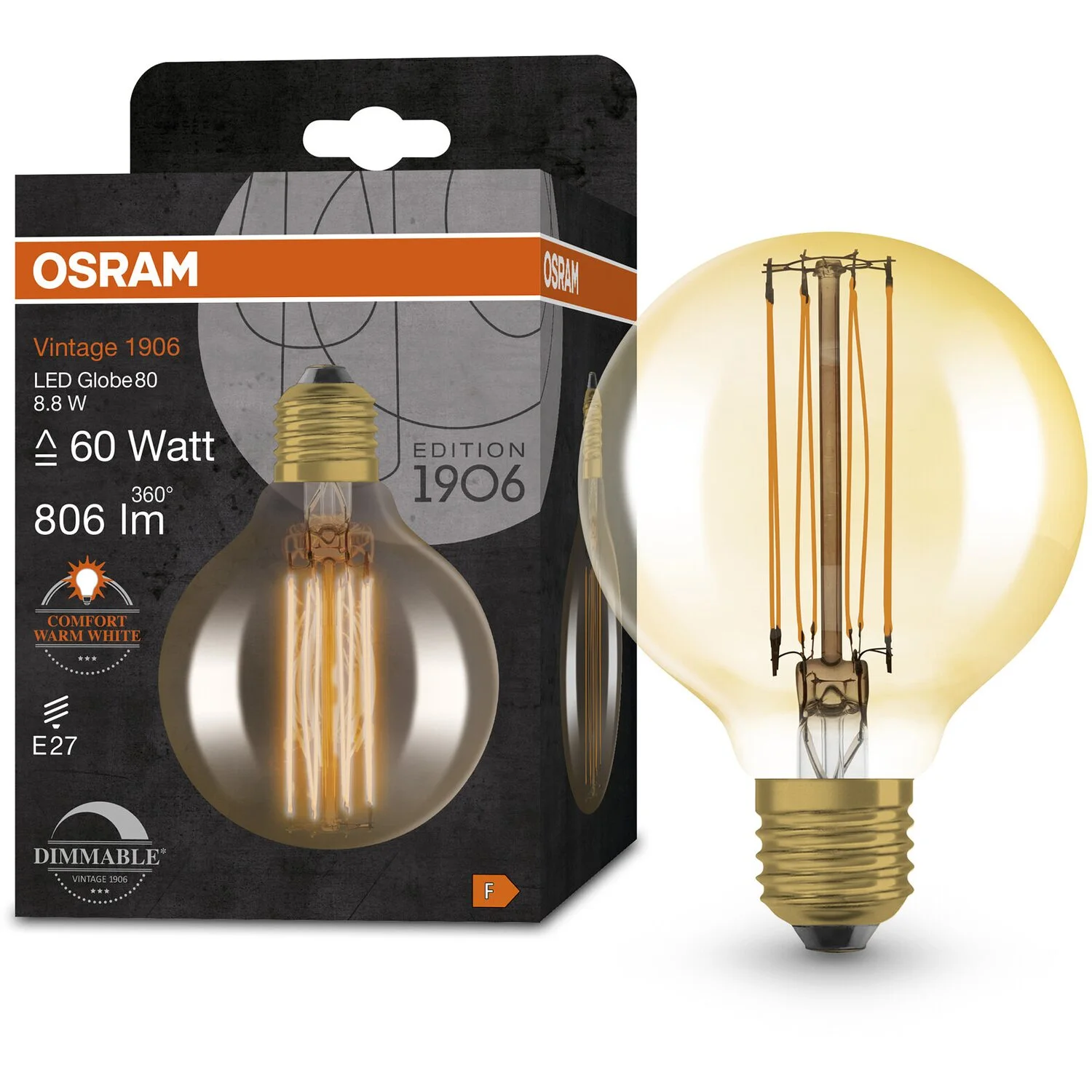 Die lange Lebensdauer von 15’000 h zeichnet das Osram LED-Leuchtmittel in Globeform mit E27-Fassung aus.