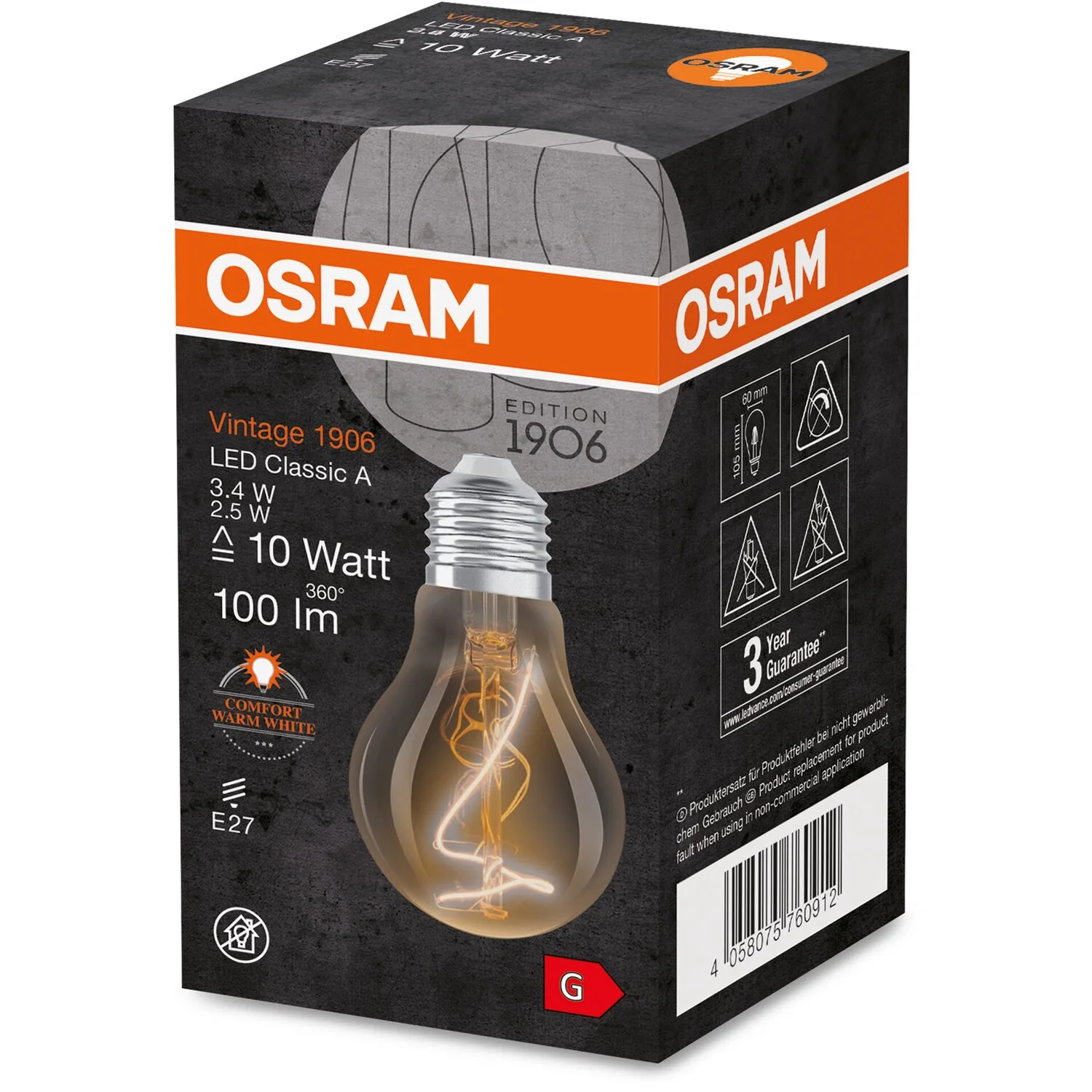 Mit einer Farbtemperatur von 1’800 K ist das Osram E27 LED-Leuchtmittel somit perfekt für den Wohn- und Essbereich geeignet. Das gewisse Extra wird durch die smokey Farbe des Leuchtmittels erzielt.
