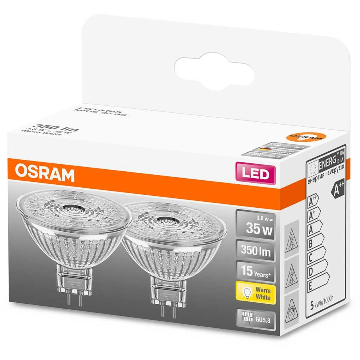 Das Osram LED-Leuchtmittel Reflektor GU5.3 / 3,8 W / 350 lm ist eine Niedervolt-LED-Reflektorlampe MR16 mit Retrofit-Stecksockel.