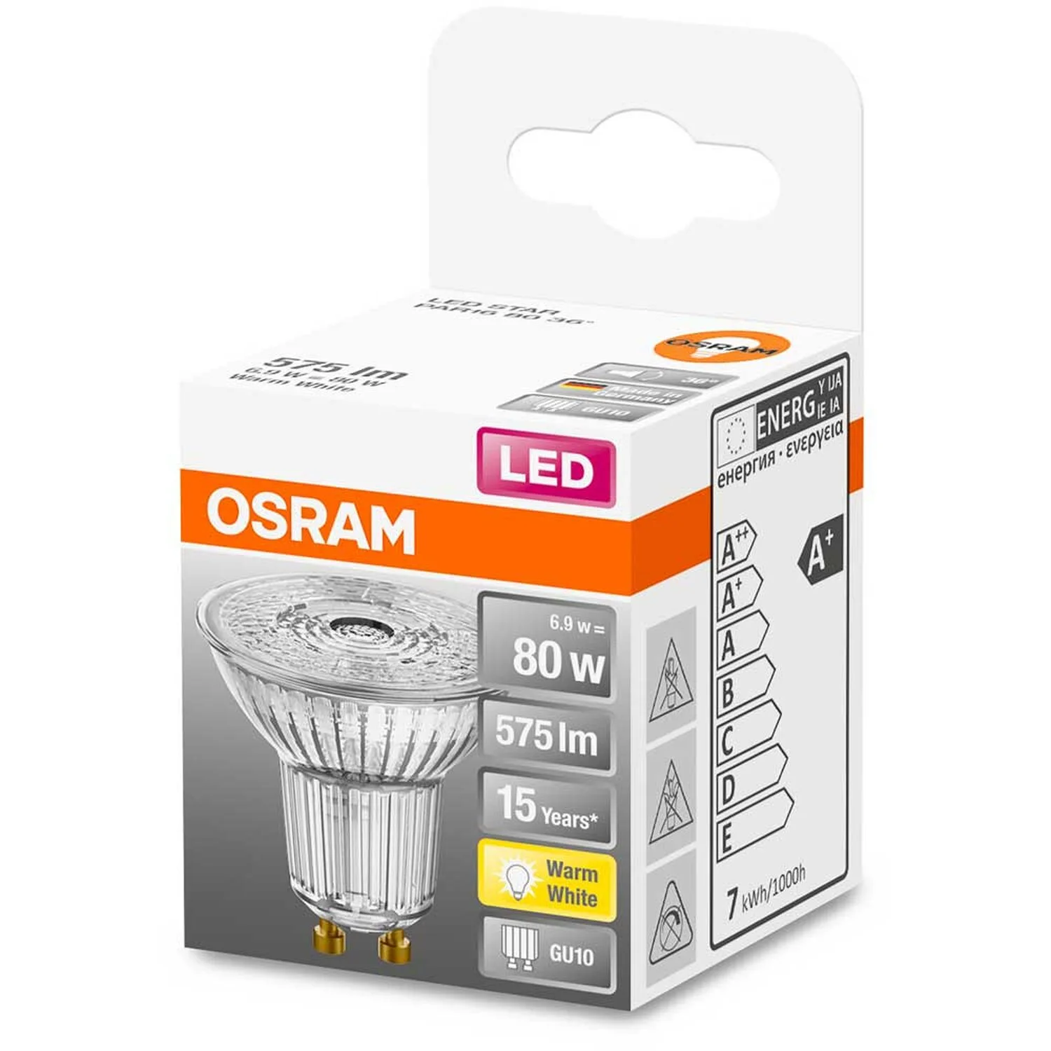 Das Osram LED-Leuchtmittel Reflektor GU10 / 6,9 W / 575 lm ist eine LED-Reflektorlampe PAR16 mit Retrofit-Stecksockel.