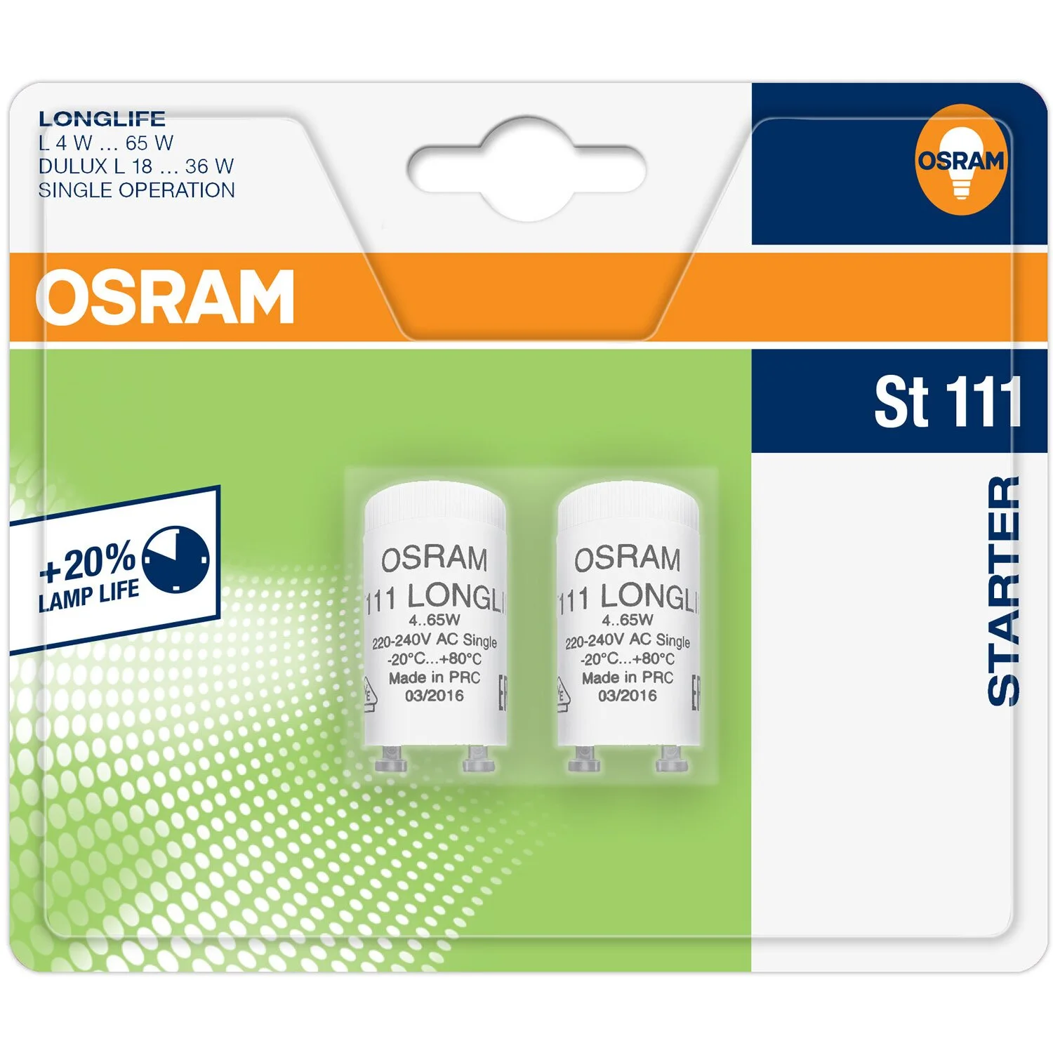 Der Osram Starter für Einzelschaltung 111 Longlife sorgt jederzeit für sichere, schnelle und lampenschonende Zündung der Leuchtstofflampe. Zudem verlängert der Osram Longlife Starter die Lampenlebensdauer gegenüber herkömmlichen Startern um bis zu 20 Proz