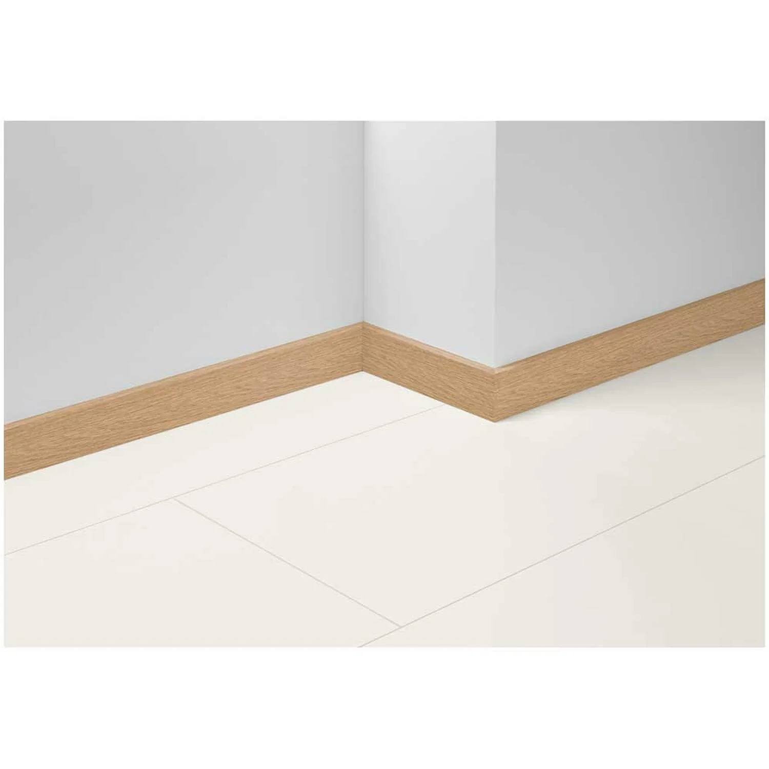 Für den perfekten Abschluss zur Wand steht ein breit gefächertes Angebot an passenden Sockelleisten zur Verfügung. Die geradlinige, schlichte Sockelleiste ist genau richtig für ein elegantes, modernes Ambiente. Die Befestigung mit dem praktischen Clip für verdeckte Kabelführung ist einfach und montagefreundlich. Die Dekor-Sockelleiste hat einen hochwertigen MDF-Kern, ist feuchtraumgeeignet und verwindungsfrei, vollummantelt im Kantenbereich und zeugt von ausgezeichneter Oberflächenqualität.
