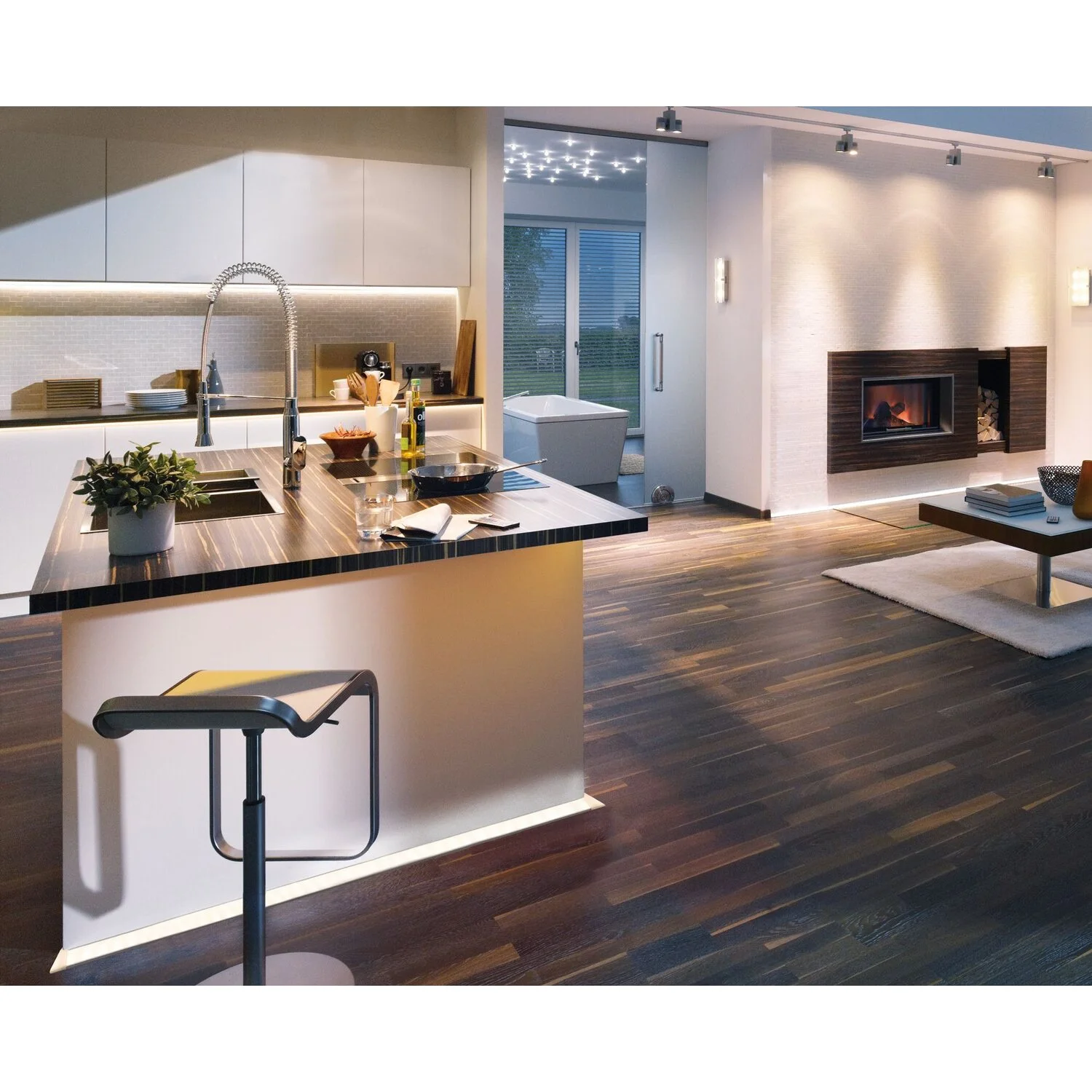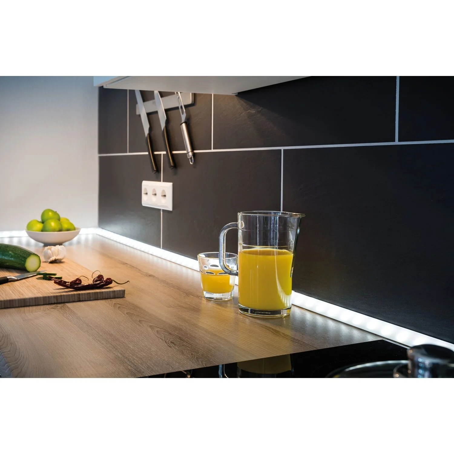 Dieses Paulmann Delta Profil wird mit LED-Strips in beliebiger Lichtfarbe bestückt und ermöglicht dekorative Effekte für Fussleisten und Abschlusskanten. Es ist auch als Zusatzlicht für Nutzflächen und Unterschränke einsetzbar.