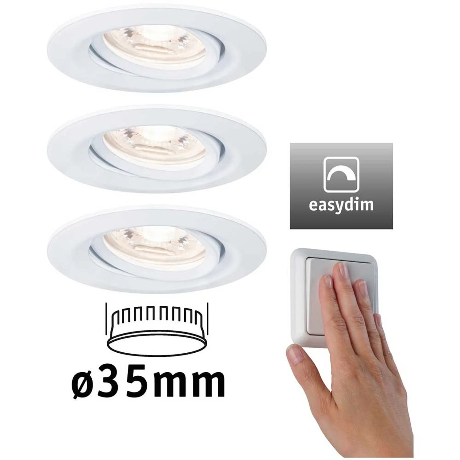 Die schwenkbaren Einbauleuchten Nova Mini in der Farbe Weiss matt aus Aluminium bieten mit ihrer reduzierten Grösse ganz neue Möglichkeiten. Dank integrierter EasyDim-Funktion lassen sie sich stufenlos über einen handelsüblichen Lichtschalter dimmen. Sie eignen sich hervorragend für Wintergärten, Spotbeleuchtung, Tresen- und Balkonverkleidungen. Die einzigartigen 35-mm-Coins sind wechselbar, flach und unendlich verkettbar.