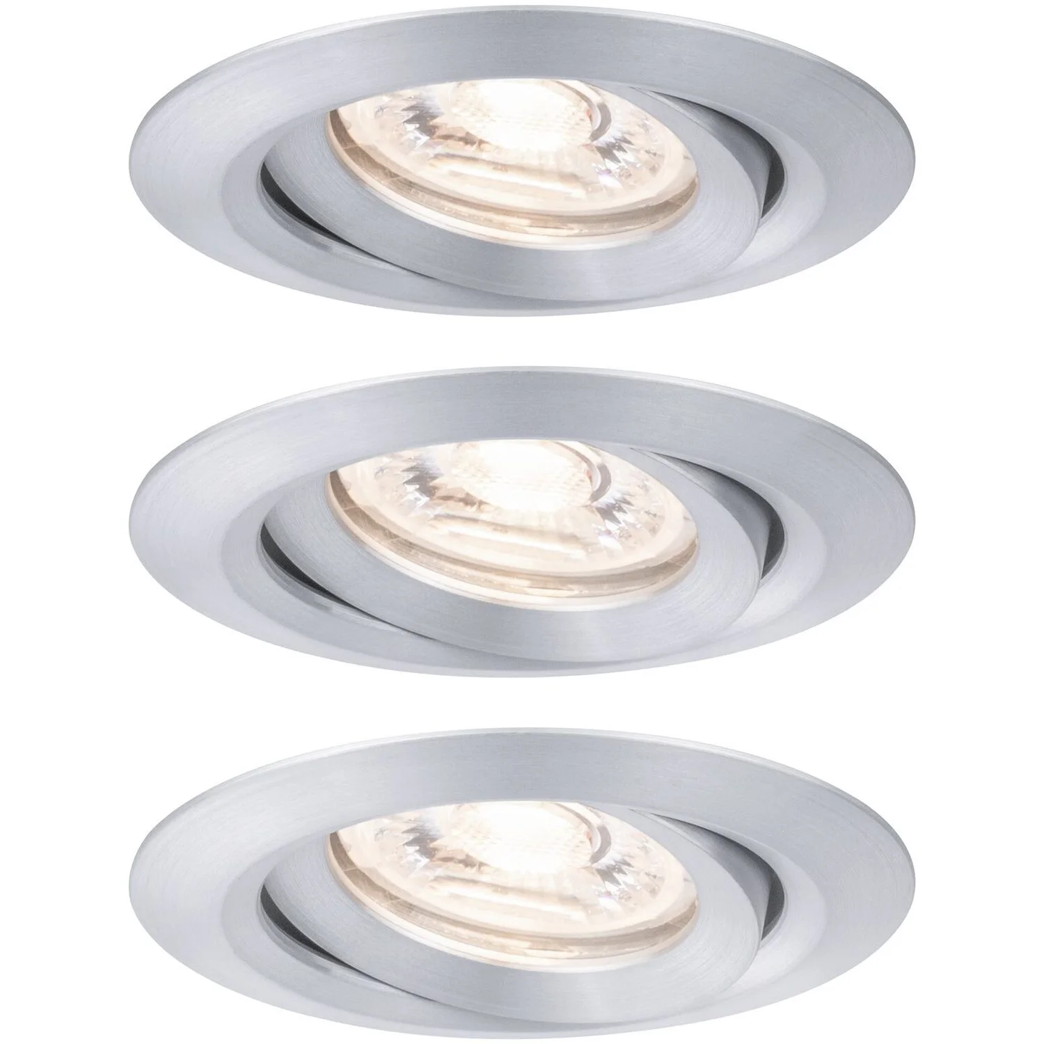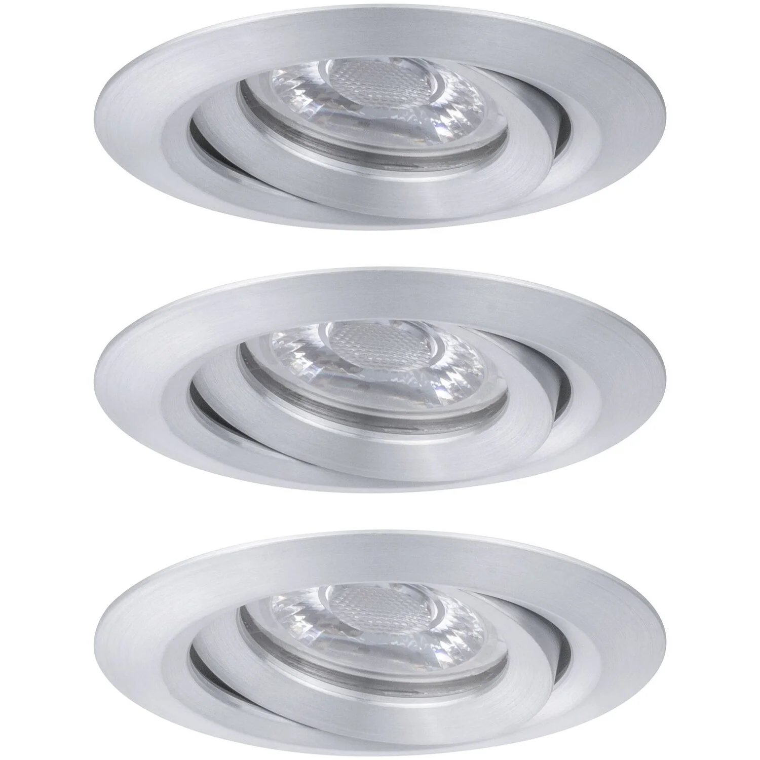 Die Paulmann LED-Einbauleuchte Nova mini schwenkbar Alu gedreht 3 x 4 W, 2’700 K, 230 V bietet mit ihrer reduzierten Grösse ganz neue Möglichkeiten. Die schwenkbare Einbauleuchte in der Farbe Alu gedreht eignet sich hervorragend für Wintergärten, Spotbeleuchtung, Tresen- und Balkonverkleidungen. Die einzigartigen 35-mm-Coins sind wechselbar, flach und unendlich verkettbar.