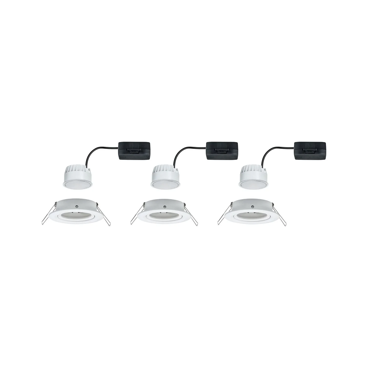 Nova Einbaustrahler 3 x 6,5 W aus Alu in Weiss matt, bieten Ihnen gutes Licht, stimmiges Design und hohe Energieeffizienz. Dank der Anschlussbox mit werkzeugloser Schnellklemme, können Sie die Leuchten ganz einfach montieren und grenzenlos miteinander verketten. Durch die unkomplizierte Fixierung mit Haltefedern, bleibt die Zimmerdecke auch nach mehrmaligem Ein- und Ausbau unbeschädigt. Im Lieferumfang sind effiziente und langlebige LED-Leuchtmittel enthalten, die mit ihrem warmweissen Licht für ein stimmungsvolles Ambiente sorgen.