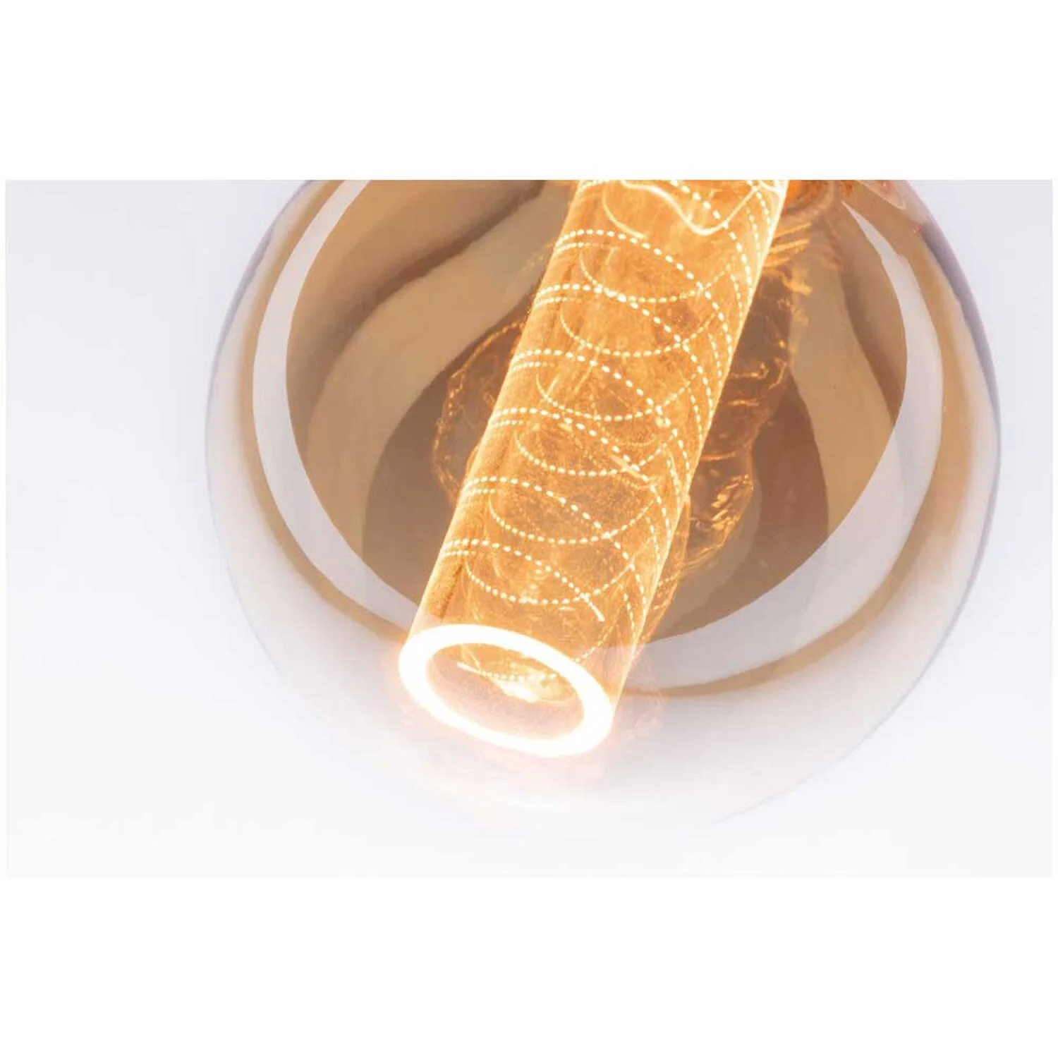 Dass wahre Schönheit von innen kommt, beweisen die neuen Vintage-Globes mit Innenkolben in Spiralmuster. Die Kolben mit feiner Lasergravur geben ihr dezentes und vollkommen blendfreies Gold-Licht an die Umgebung ab und der leuchtende Ring am Ende des Kolbens strahlt perfekt gerichtetes Licht nach unten. Damit verpassen die extravaganten Leuchtmittel jeder noch so schlichten Leuchte den perfekten Glamour-Look.