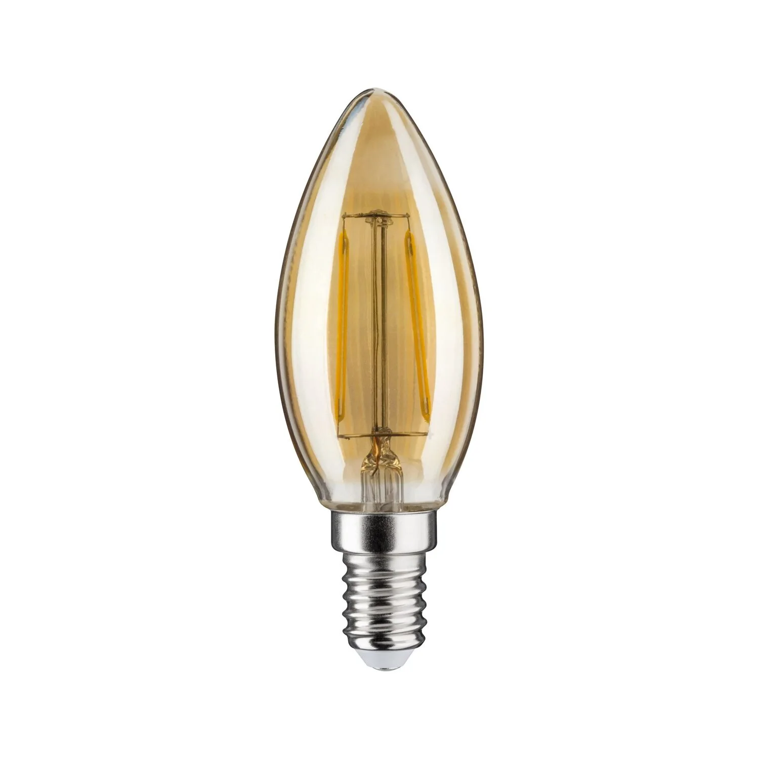 Diese Kerzenlampe mit einer Leistung von 2,6 W eignet sich durch ihre schmale Bauform besonders für den Einsatz in Lüstern, Wand- und Deckenleuchten. Sie hat eine gemütliche goldene Lichtfarbe und passt in jede handelsübliche E14-Fassung.