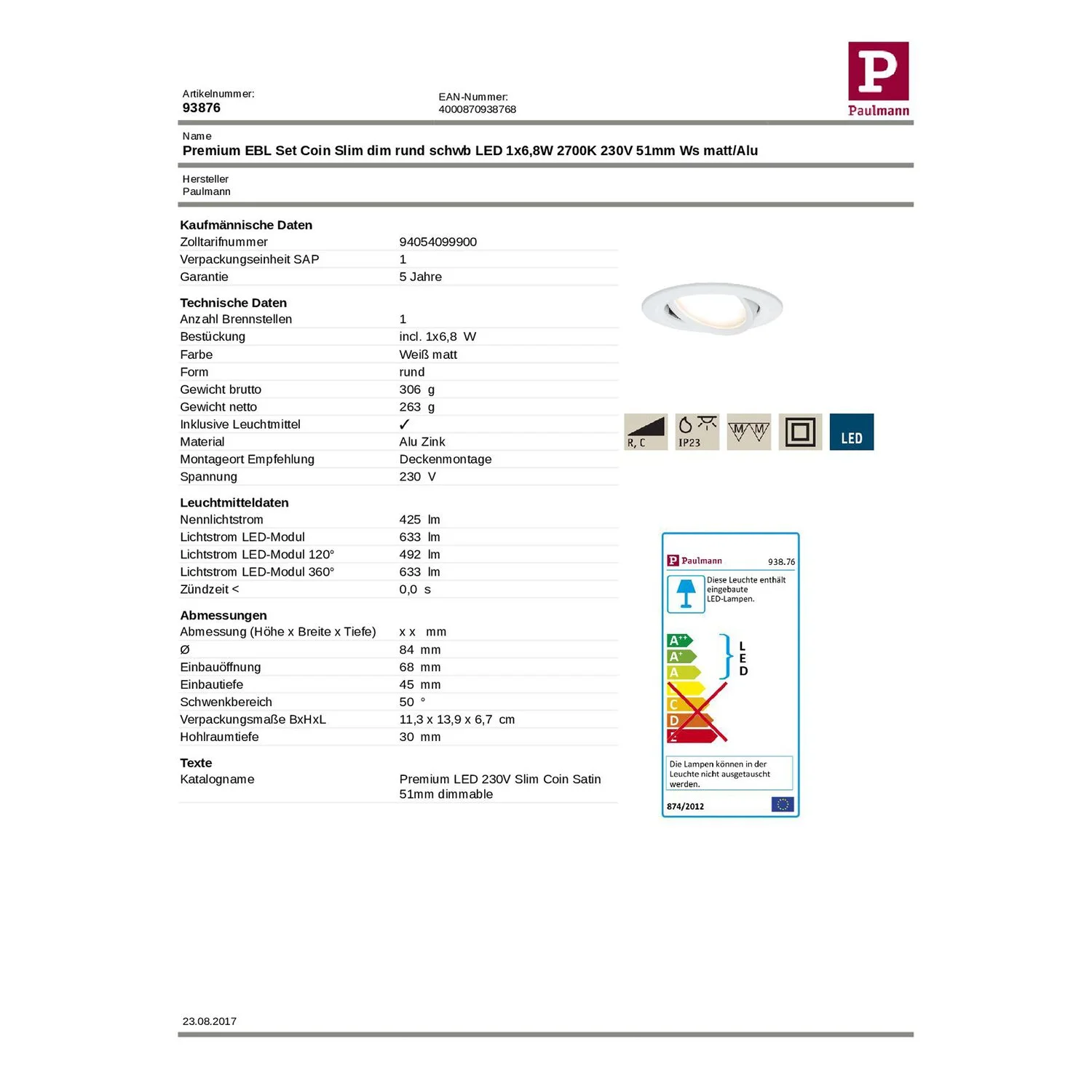 Die Slim Coins sind innovative und anwenderfreundliche Einbaustrahler, die sich sowohl für Neuinstallationen als auch für den Austausch bestehender Installationen eignen. Sie sind besonders flach und können deshalb in Decken mit einem Hohlraum von nur 30 mm eingebaut werden. Egal ob 50 cm oder 5 m – den Abstand der Einbauspots bestimmen Sie. Durch die einfache und werkzeuglose Verkettung der Einzelleuchten mittels Schnellklemmen sparen Sie nicht nur Zeit und Nerven – dank energieeffizienter LED-Technik mit sehr geringem Stromverbrauch schonen die Slim Coins zusätzlich auch Ihren Geldbeutel. Die Dimmfunktion ermöglicht eine individuelle Anpassung der Helligkeit an Ihre Stimmung und sorgt für helles Arbeitslicht und gemütliche Wohlfühlbeleuchtung in einem.