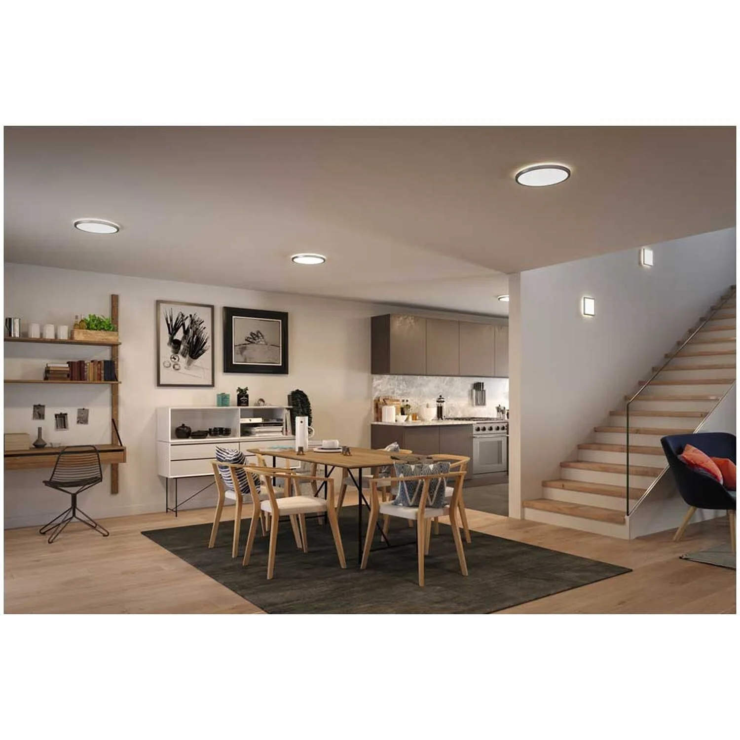 Das runde LED-Panel Atria Shine eignet sich ideal für die Grundbeleuchtung von Wohn- und Schlafräumen oder Küchen. Das warmweisse Licht des Panels schafft eine gleichmässige und flächige Raumausleuchtung. Die zusätzliche Backlight-Technik zaubert eine besondere Wohlfühlatmosphäre und verleiht dem Panel eine fast schwebende Leuchtoptik. Dank der Schnellklemme und des besonderen Drehverschlusses ist das Panel mit seiner ultraflachen Aufbauhöhe von 28 mm sehr montagefreundlich.