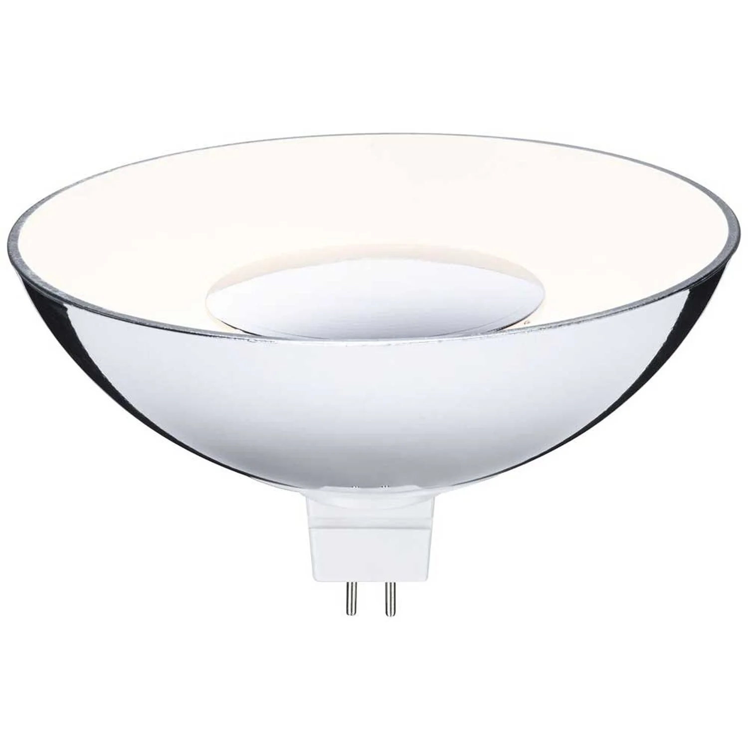Dieses LED-Reflektor-Leuchtmittel von Paulmann in Weiss und Silber ist der ideale Ersatz für alte Niedervolt-Halogenreflektoren (12 V). Es liefert warmweisses Licht mit 3’000 K und hat einen GU5.3-Sockel. Durch die Innenverspiegelung werden die Lichtstrahlen gebündelt, damit sich ein fokussiertes Licht ergibt, das gezielt in eine Richtung gelenkt wird. Dank ihrer Optik lässt sich das Reflektor-Leuchtmittel auch als dekoratives Leuchtmittel in Spotlights einsetzen.
