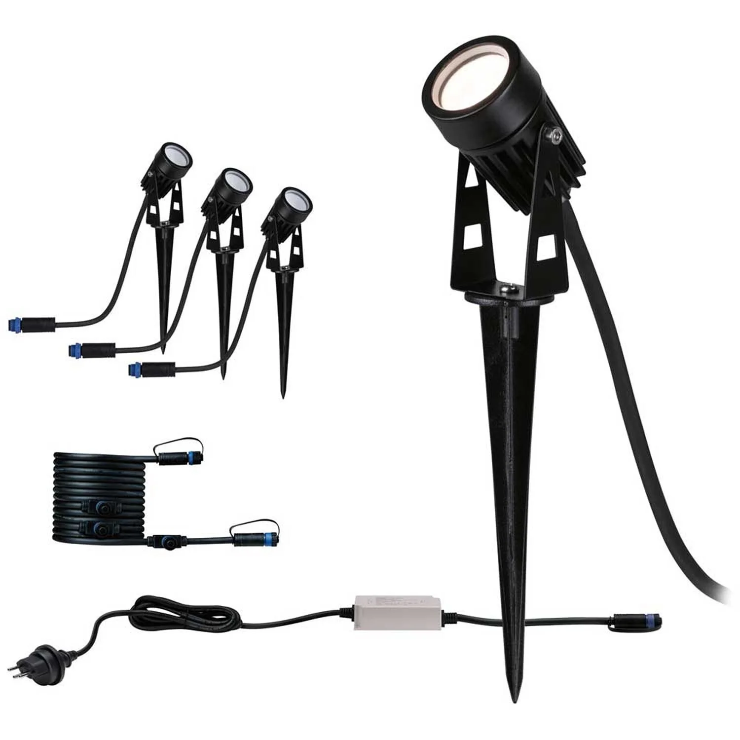 Auspacken, zusammenstecken, Garten beleuchten: das rostfreie Plug & Shine Starterset Classic Spot bestehend aus drei LED-Spots mit Erdspiessen, Trafo und Verbindungskabel bietet den optimalen Einstieg in die Aussenbeleuchtung. Die dimmbaren Plug & Shine LED-Spotleuchten setzt die Blumen, Sträucher und Bäume in warmweissem Licht in Szene und ist absolut wetterbeständig. Sie lassen sich individuell einstellen, so strahlt das Licht genau dahin, wo es benötigt wird. Dabei lassen sich alle Zubehörteile aus der Plug & Shine Serie miteinander kombinieren. Passende Leuchtmittel sind im Lieferumfang enthalten. Die fest verbauten LED-Module liefern warmweisses Licht von 3’000 K. Mit einer Lebensdauer von 30’000 h sind Sie mit langem Vergnügen durch das Lichtspektakel bedient.