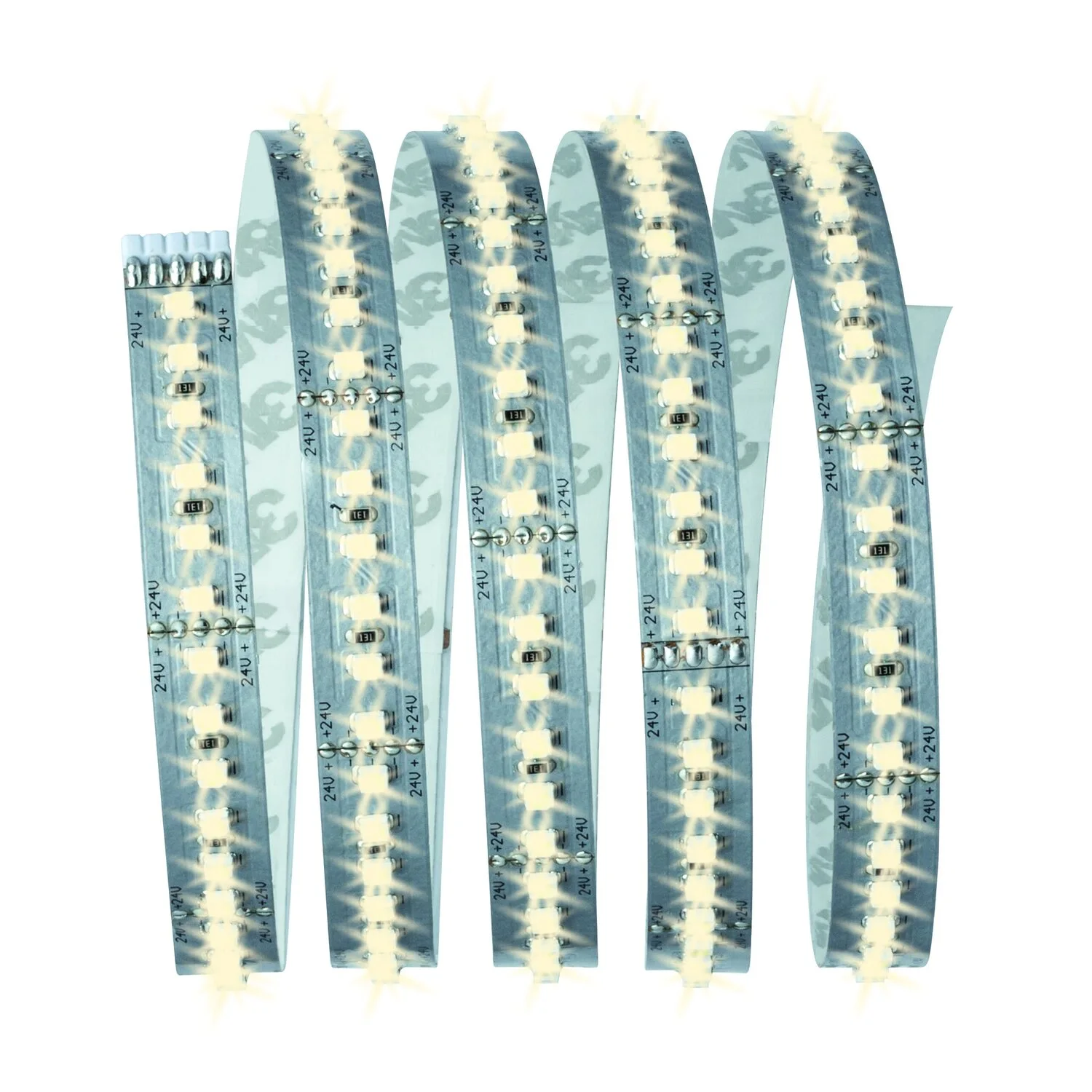 MaxLED-Strips sind so leistungsstark, dass sie problemlos zur Raumausleuchtung eingesetzt werden können. Besonders in Profilen sind sie echte Highlights. Warmweisse Strips sorgen für gemütliches und entspannendes Raum- und Nutzlicht. Das Basis-Set enthält neben dem Streifen ein passendes Vorschaltgerät. Es lässt sich nach Bedarf mit zusätzlichen Strips, Verbindern und Steuerungseinheiten mit Fernbedienung erweitern. Bitte beachten Sie bei der Planung die unten angegebene Max.-Länge, die nicht überschritten werden darf.