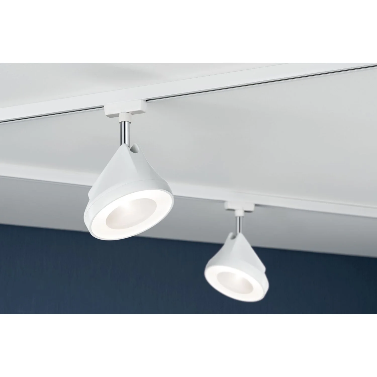 Der weisse URail-Spot Arena mit chromfarbenen Akzenten zeichnet sich durch seinen hohen lm-Output aus. Trotz seines flachen Designs sorgt er durch die eingebaute Linse für gerichtetes Licht mit einem definierten Ausstrahlwinkel.