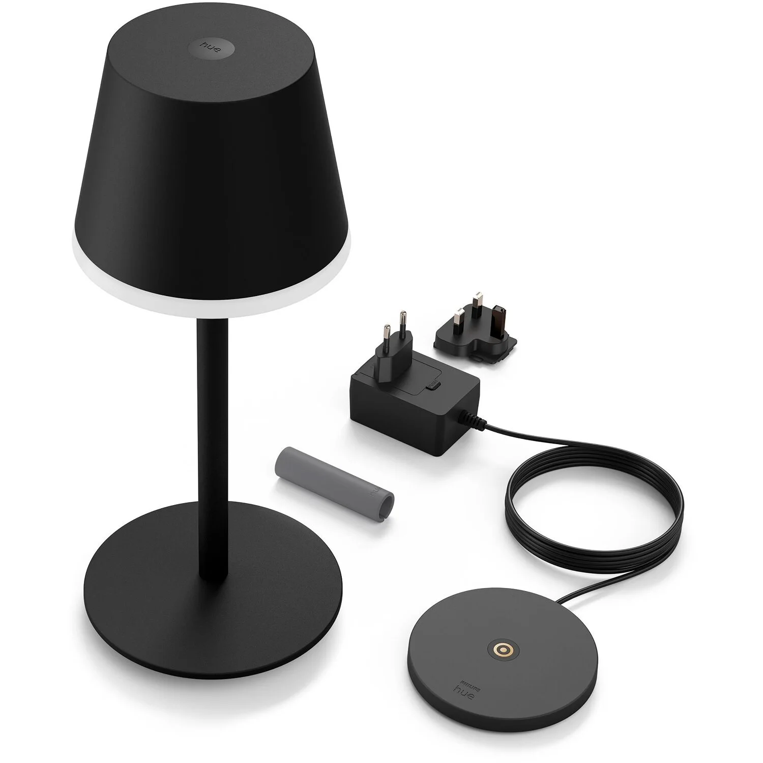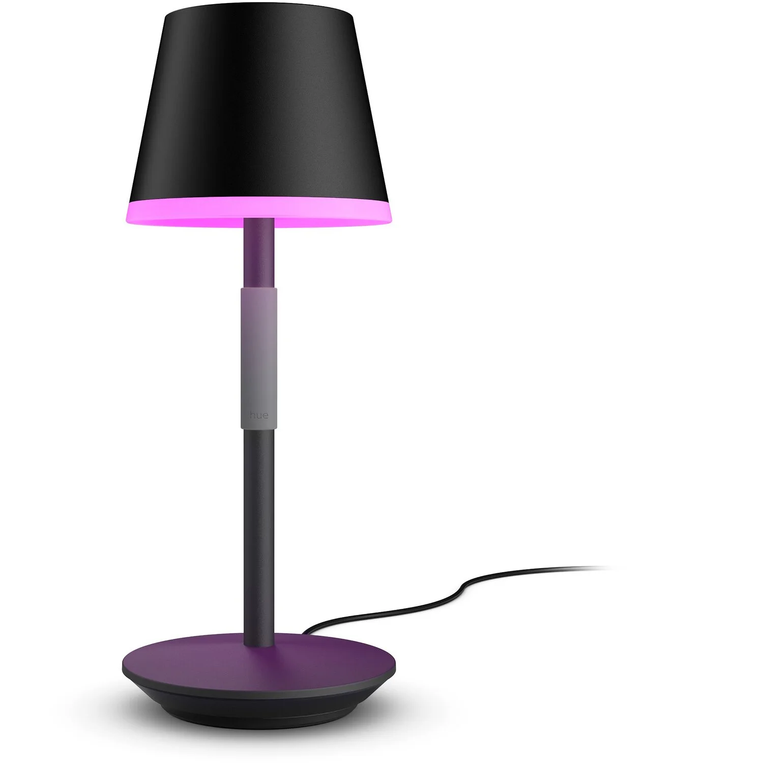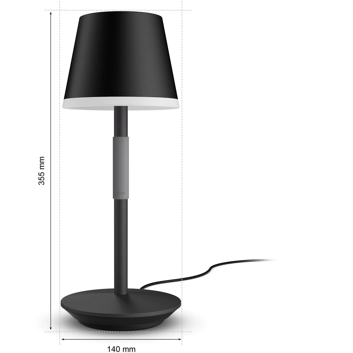 Die tragbare intelligente Philips Hue Tischleuchte White & Color Ambiance Go Schwarz mit 370 lm eignet sich optimal für die Nutzung im Innen- und Aussenbereich. Experimentieren sie mit 16 Mio. verschiedenen Farben und 50’000 verschiedenen Weisstönen, um die gewünschte Wirkung Aussen oder Innen zu erzeugen. Hochwertiges LED-Licht mit einer Akkuladezeit von 3 – 4 h und einer Akkudauer: 6 – 48 h (abhängig von der genutzten Einstellungen). Integrierbar in das Hue-System für die App-Steuerung, Steuerung über Bluetooth und Bridge.