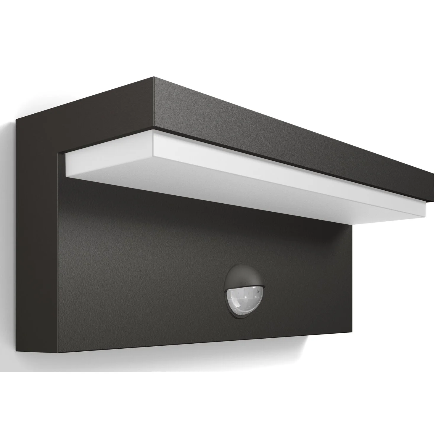 Diese wunderschöne L-förmige Philips Wandleuchte Bustan aus hochwertigem, grauem Aluminium richtet gestreutes, warmweisses LED-Licht auf Ihre Wand. Die Leuchte verfügt über einen Bewegungssensor und schaltet sich somit automatisch ein, wenn jemand den Bereich betritt.