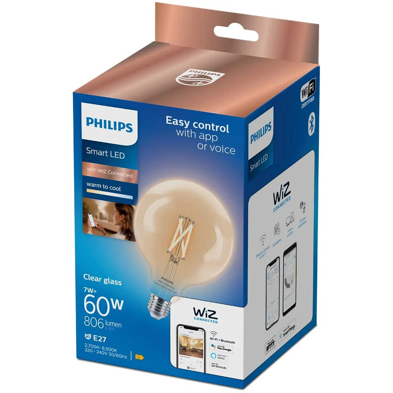 Diese Smart-LED von Philips erzeugt ein stimmungsvolles Licht im Vintage-Stil. Das Leuchtmittel ist kompatibel mit WiZ Connected, das heisst, es kann mit der WiZ App oder per Sprachsteuerung über das vorhandene WLAN gesteuert werden.