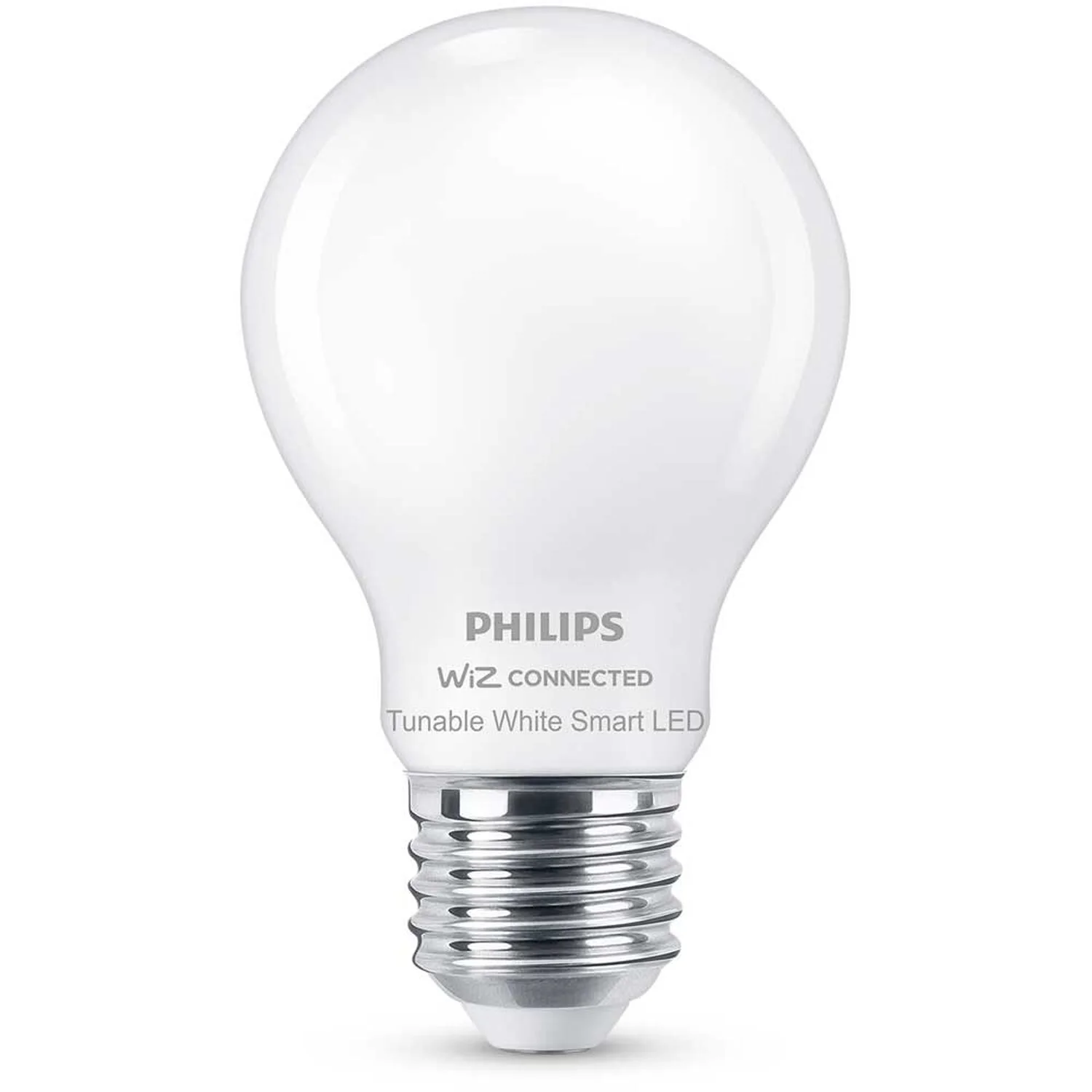 Diese matte Smart-LED von Philips für E27-Fassungen erzeugt ein warm- oder kaltweisses smartes Licht. Das Leuchtmittel ist kompatibel mit WiZ Connected, das heisst, es kann mit der WiZ App oder per Sprachsteuerung über das vorhandene WLAN gesteuert werden.