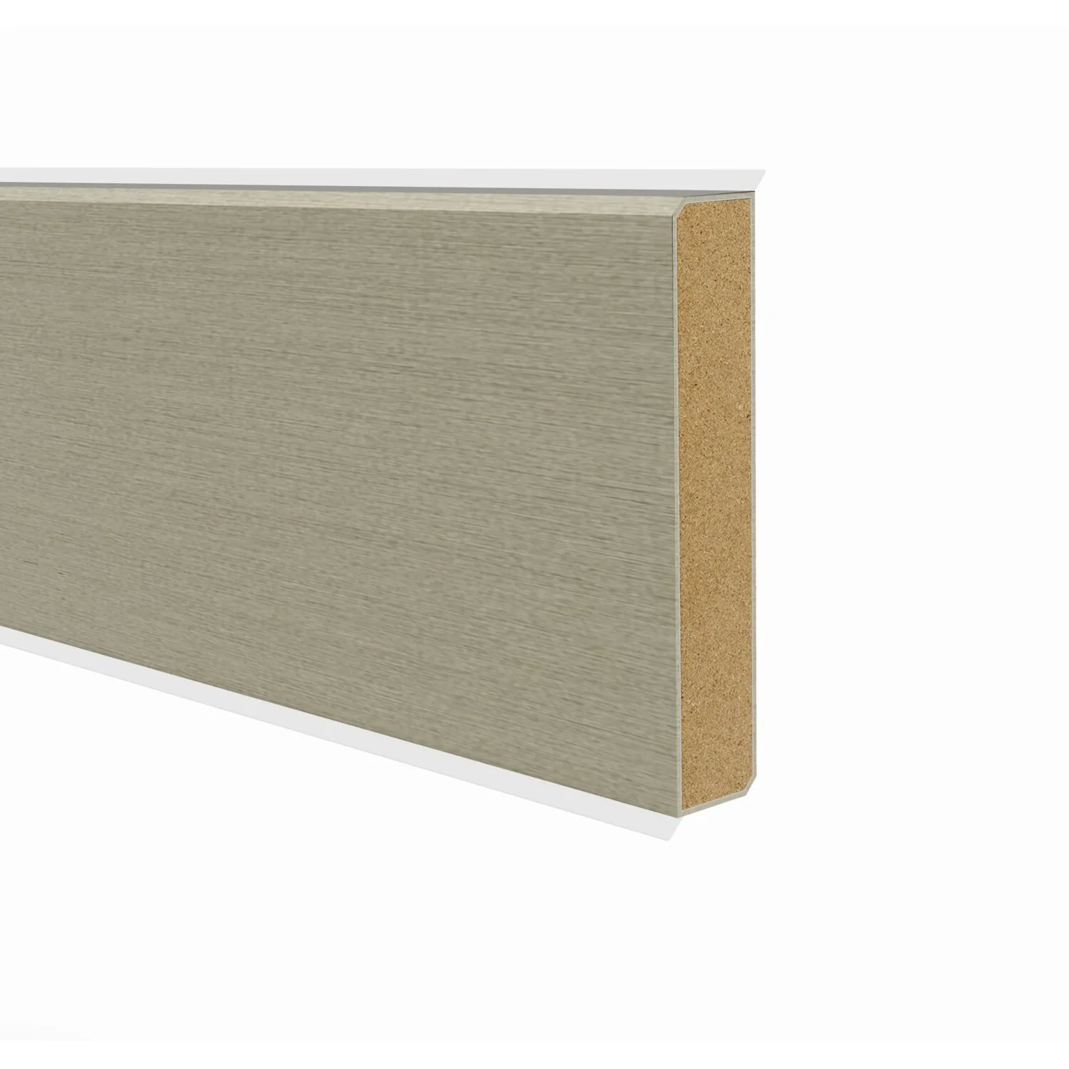 Die Sockelleiste Cubu flex life verfügt über einen stabilen HDF-Kern. Durch ihre Kunststoffummantelung und die integrierten Dichtlippen ist sie für viele Bodenbelagsarten geeignet. An Wand- und Bodenübergängen deckt sie vorhandene Dehnungsfugen perfekt ab.