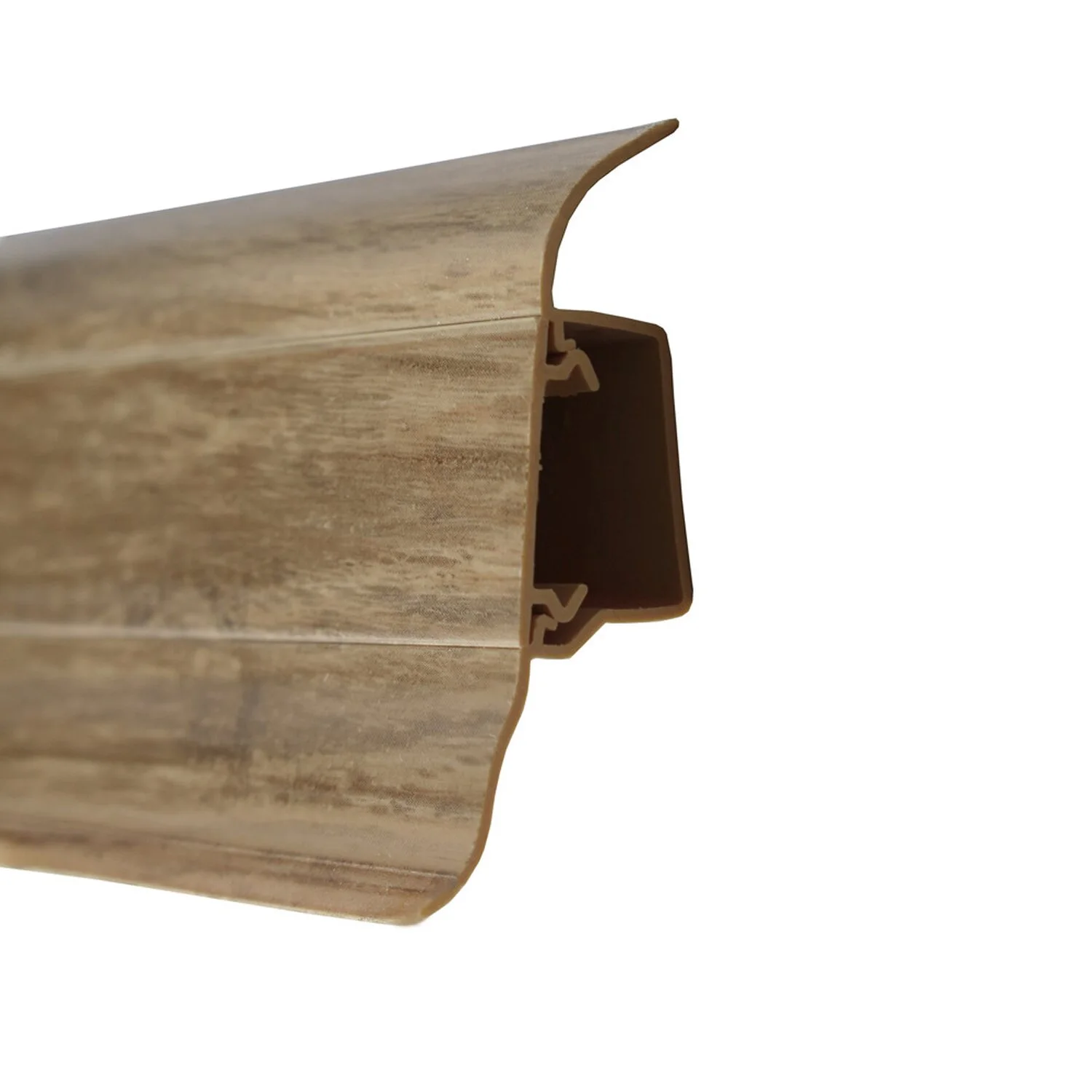 Die Kunststoffsockelleiste des Systems 5 bietet eine grosse Auswahl an Dekoren. Sie ist besonders einfach durch Schrauben oder einfaches Kleben zu montieren. Zu jeder Sockelleiste erhalten Sie das passende Zubehör, das Ihnen die Erstellung eines einheitlichen und harmonischen Verlegebildes am Boden ermöglicht. Kabel lassen sich einfach durch den integrierten Kabelkanal führen und verschwinden somit gekonnt aus dem sichtbaren Bereich.