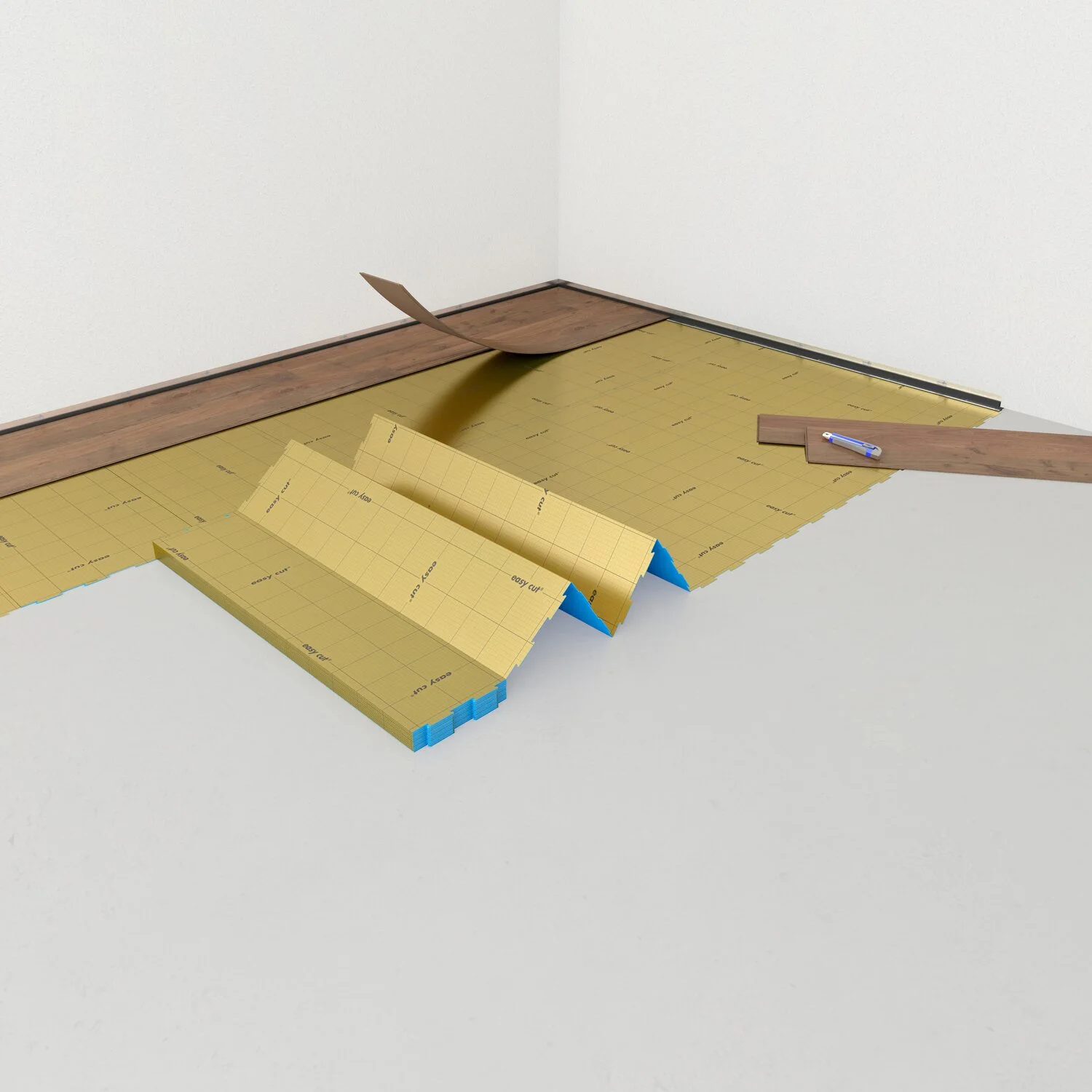 Die Vinyl- und Designboden-Unterlage wurde speziell für die Anforderungen von schwimmend verlegten Vinyl- und Designböden entwickelt. Der hoch druckfeste und egalisierende sowie stossabsorbierende Schaumkern garantiert einen stabilen, ebenen, schalldämmenden und gehkomfortptimierten Bodenaufbau. Die Grip-Tec-Oberfläche verhindert ein Verrutschen der Dielen. Zudem gleicht die Unterlage punktuelle Unebenheiten von bis zu 1 mm aus.