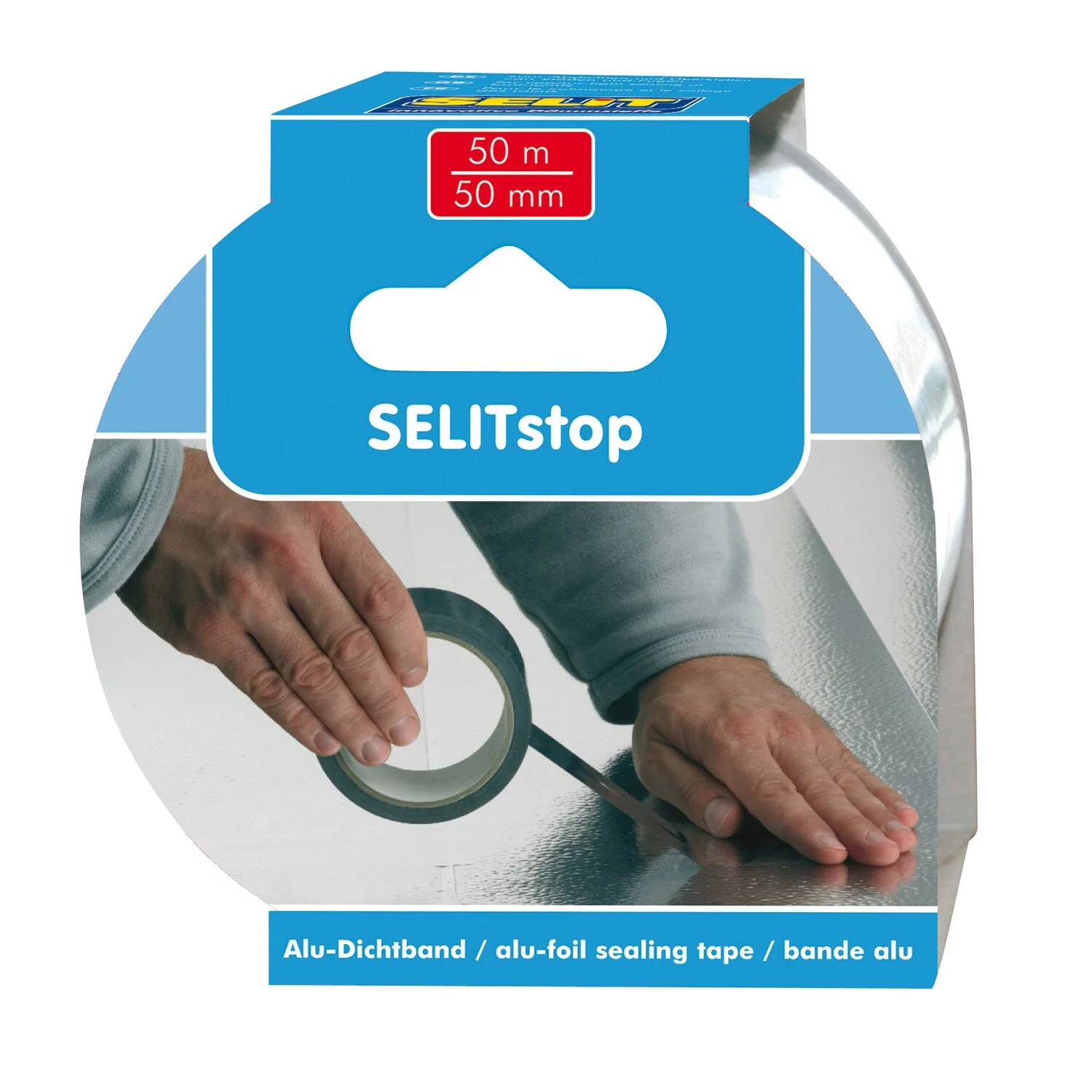 Anwendung: Alu-Dichtband zur dampfdichten Verklebung der Selitstop PE-Dampfbremsfolie.