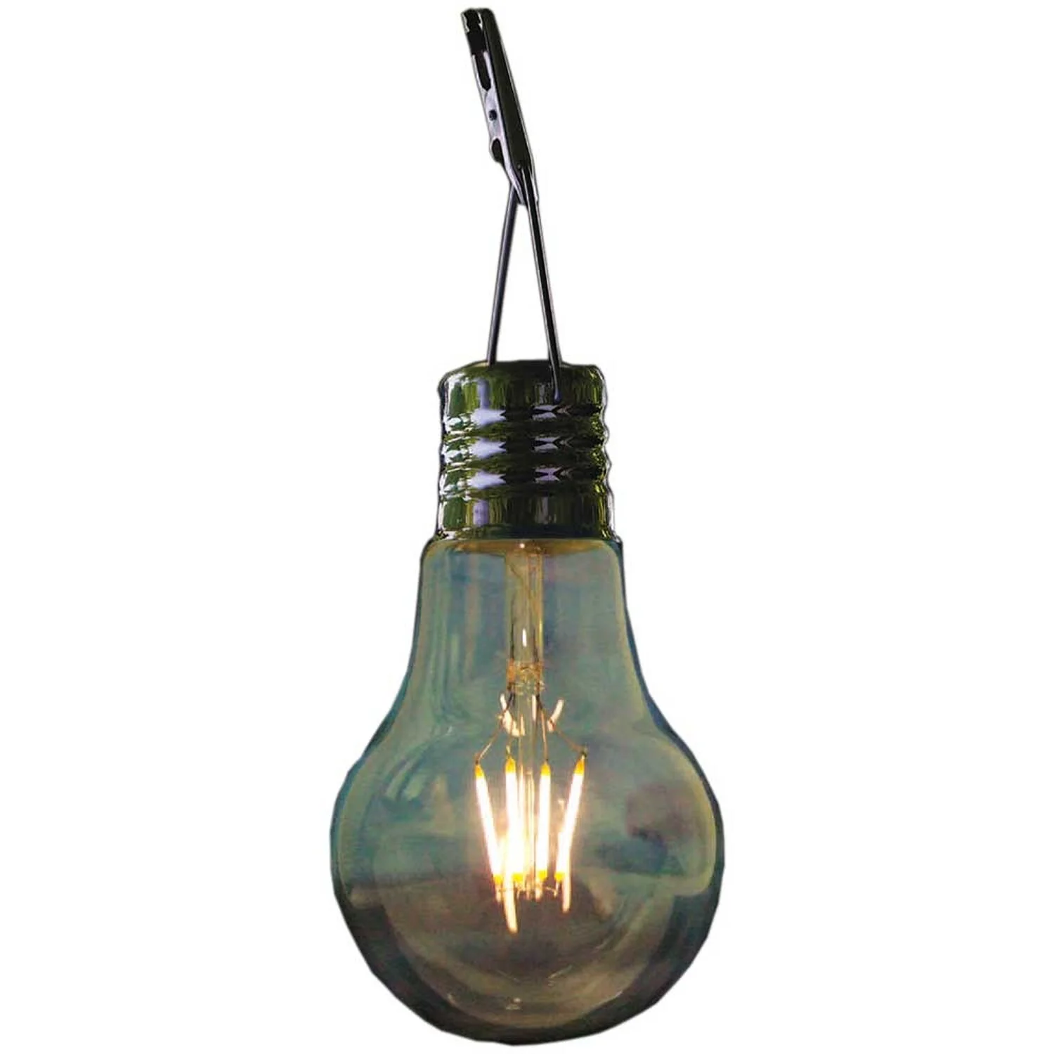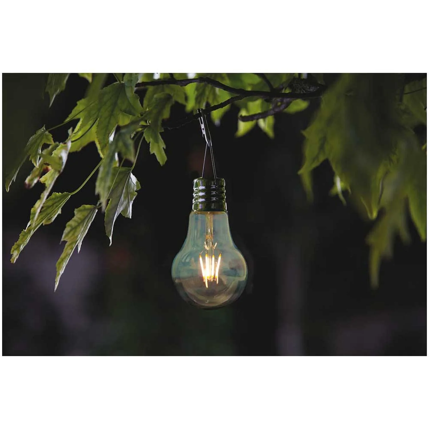 Die Solarleuchte Glühbirne Eureka Retro bringt nachts Licht in Ihren Aussenbereich. Sie ist ein dekorativer Gegenstand in Ihrem Garten, auf der Terrasse oder auf dem Balkon. Diese Solarleuchte in Glühlampenform kann ganz einfach an einem geeigneten Platz aufgehängt werden oder dank ihrem auf der Unterseite abgeflachten Glas aufgestellt werden. Der in der Leuchte eingebaute Akku wird bei Sonneneinstrahlung aufgeladen und liefert so genug Energie um die LED-Solarleuchte im Dunkeln in warmweissem Licht strahlen zu lassen.