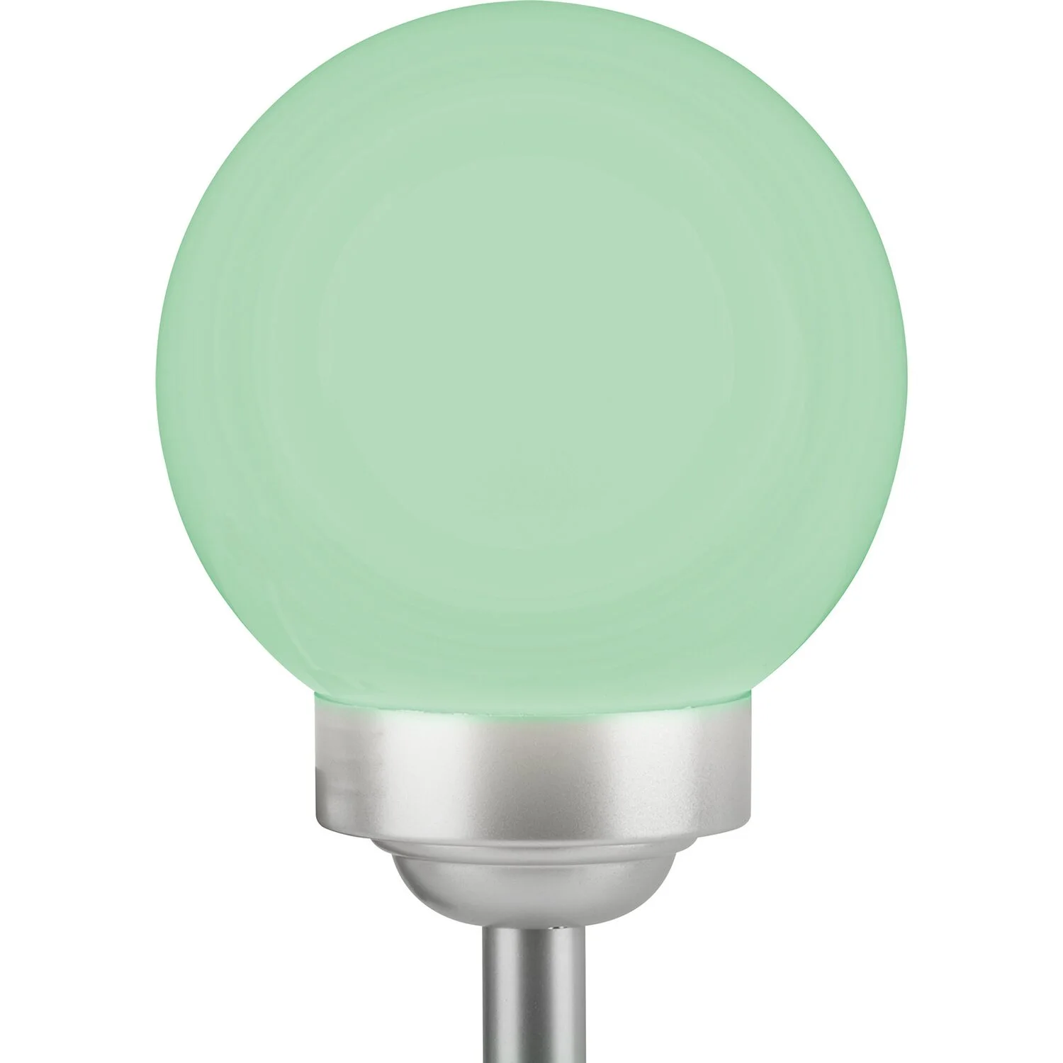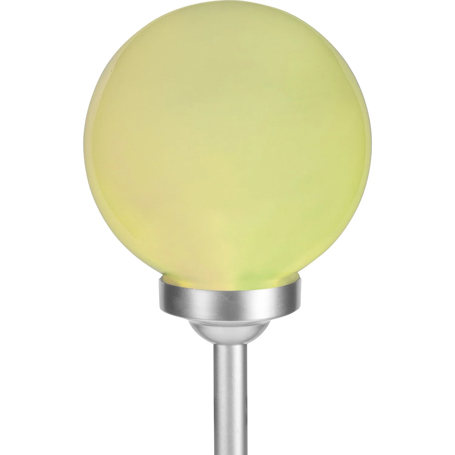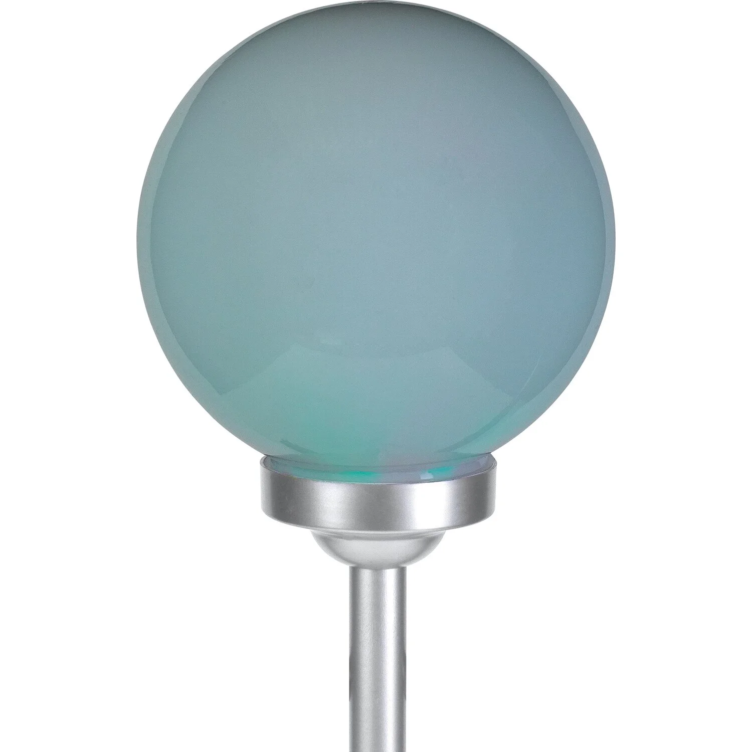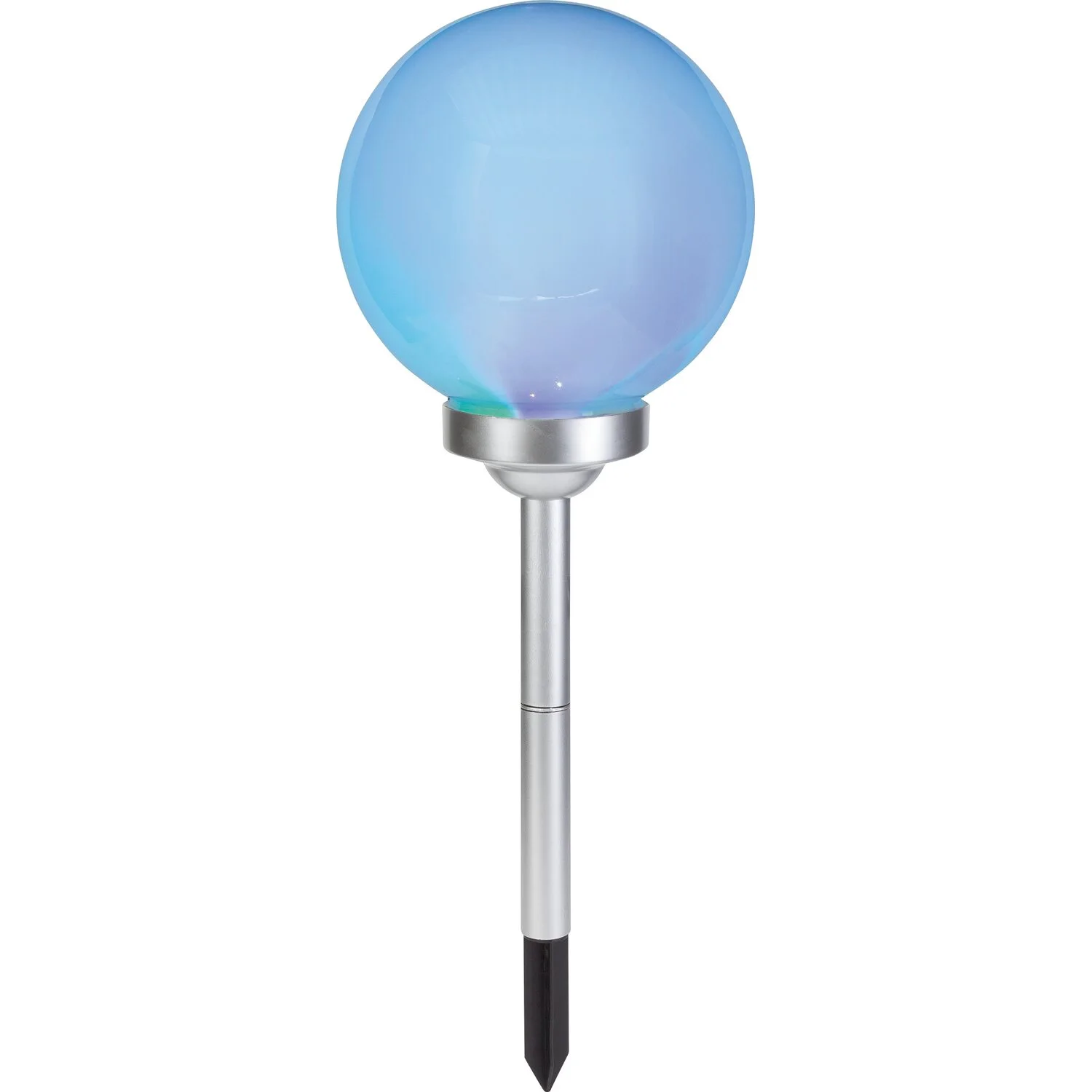 In der Kugel sind zwei LED-Leuchtmittel fest angebracht. Sie besitzen eine Leistung von je 0,06 W. Eine LED ist weiss, die andere verfügt über eine RGB-Funktion für den automatischen Farbwechsel. Nach dem Aufladen des integrierten Akkus erfolgt für sechs bis acht Stunden die Lichtabgabe. Mit Schutzart IP44 besteht ein zuverlässiger Spritzwasserschutz. Zum Befestigen wird der Spiess einfach in die Erde gesteckt.