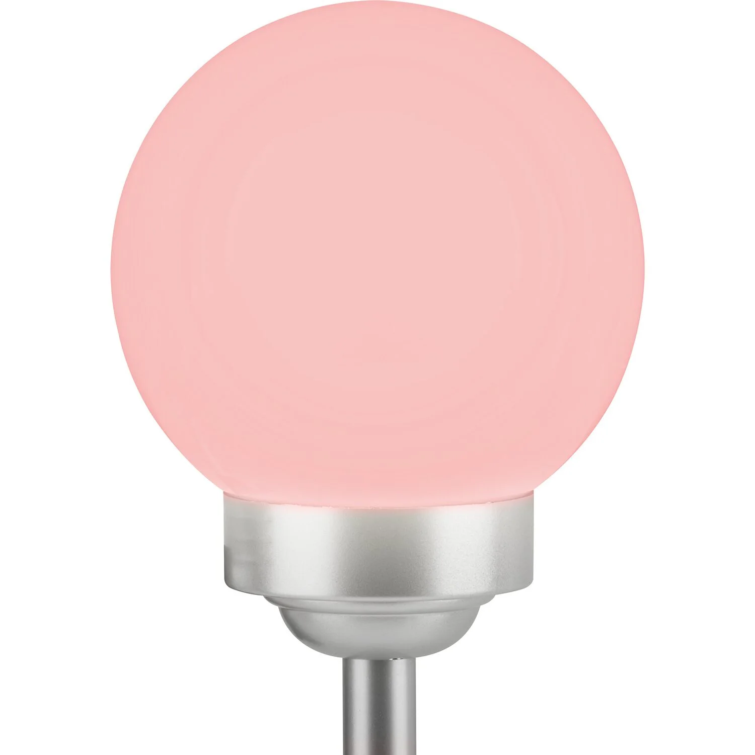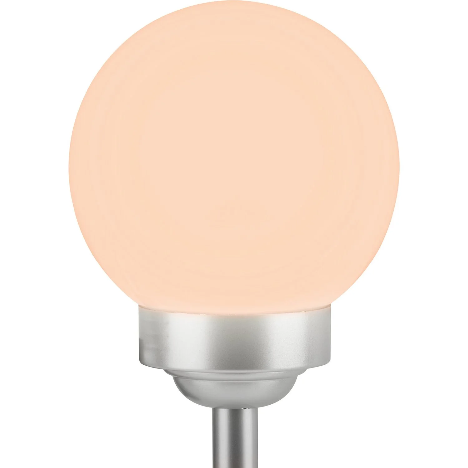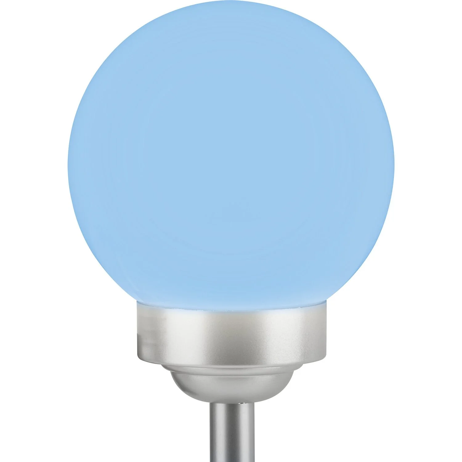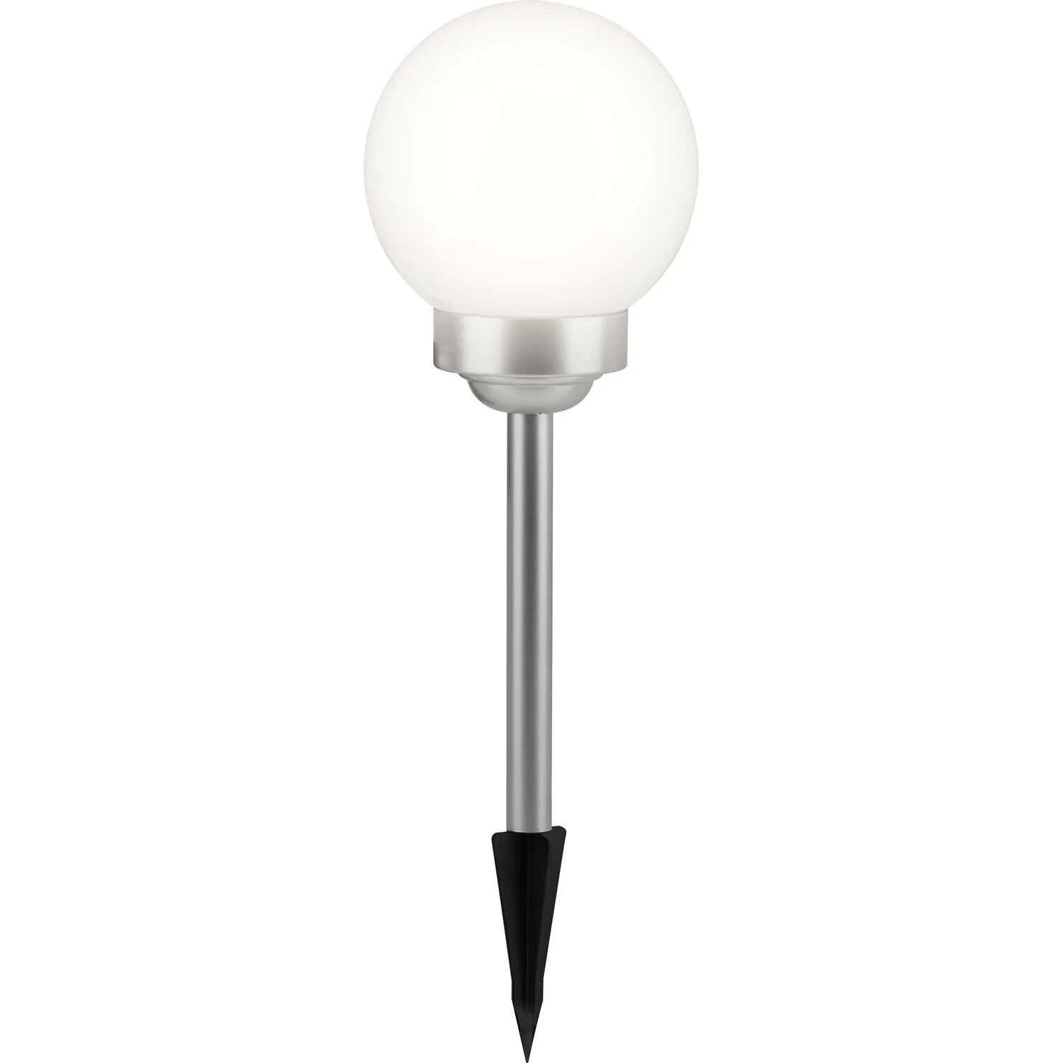 In der Kugel sind zwei LED-Leuchtmittel fest angebracht. Sie besitzen eine Leistung von je 0,06 W. Eine LED ist weiss, die andere verfügt über eine RGB-Funktion für den automatischen Farbwechsel. Nach dem Aufladen des integrierten Akkus erfolgt für sechs bis acht Stunden die Lichtabgabe. Mit Schutzart IP44 besteht ein zuverlässiger Spritzwasserschutz. Zum Befestigen wird der Spiess einfach in die Erde gesteckt.