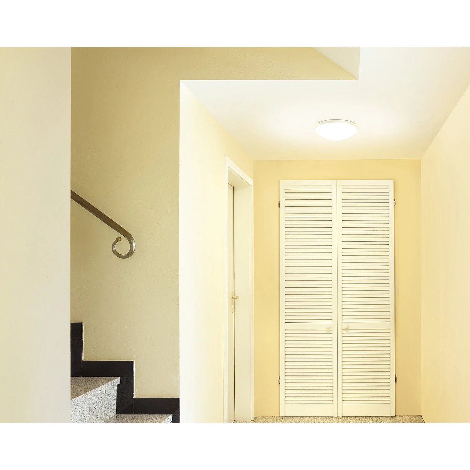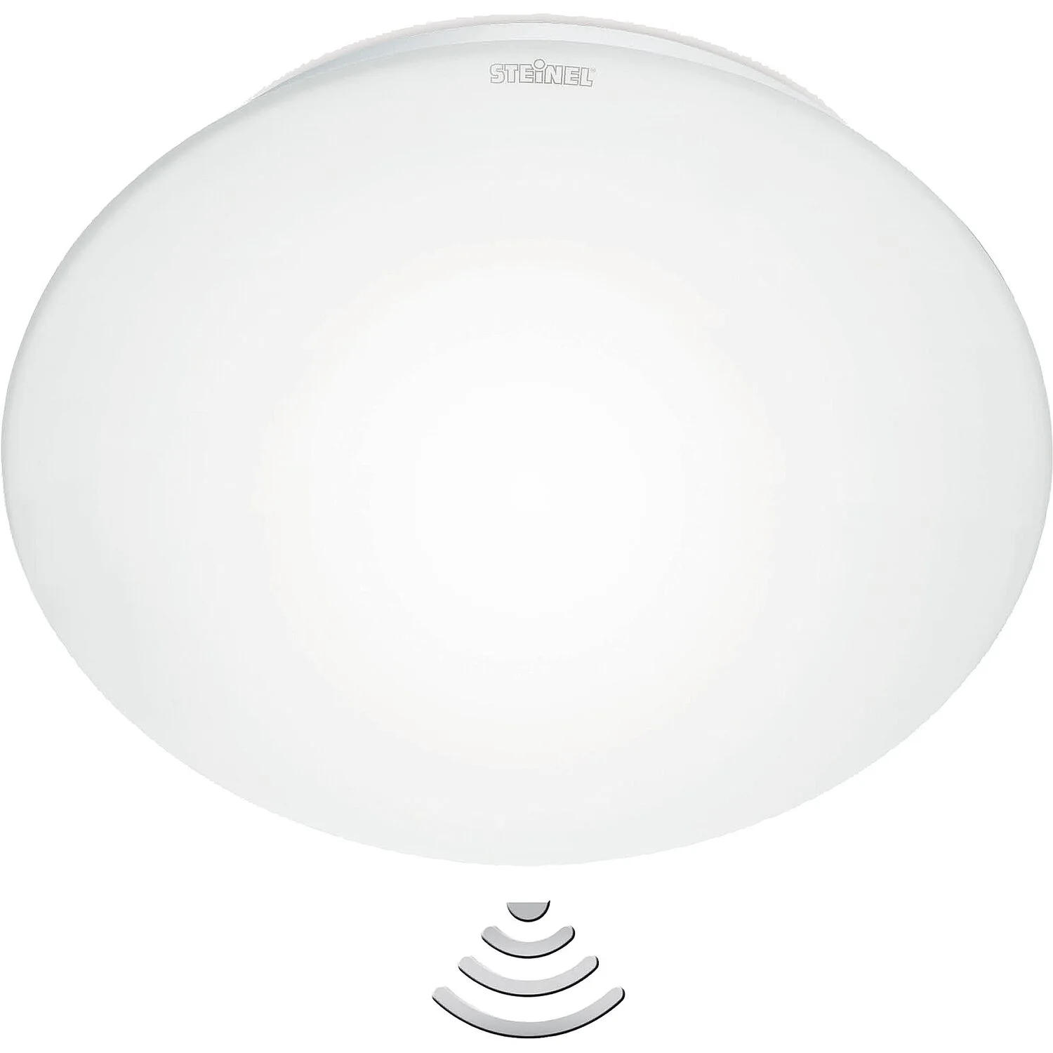Die Steinel Innenleuchte mit Bewegungsmelder RS 16 L überzeugt als Decken- oder Wandleuchte in Fluren, Dielen, Treppenhäusern und Bädern. Die Leuchte verfügt über einen eleganten, mundgeblasen Glaskörper aus Opalglas, der Ihnen ein warmes und gleichmässiges Licht garantiert. Zudem ist die Leuchte mit der 360 ° Hochfrequenz-Sensortechnologie ausgestattet. Der Sensor hinter der Haube erfasst temperaturunabhängig selbst kleinste Bewegungen und schaltet das Licht ein- und nach der individuell gewählten Zeit wieder aus. Die Reichweite des Bewegungsmelders kann stufenlos von 3 m bis 8 m eingestellt werden. Über einen Drehregler lassen sich Leuchtdauer und Dämmerungsschwelle auch ganz leicht einstellen. Da die Leuchte und der Sensor den gleichen Anschluss haben, ist die Montage sehr einfach. Die Leuchte ist gegen kleine Fremdkörper und Spritzwasser aus allen Richtungen geschützt (IP44).