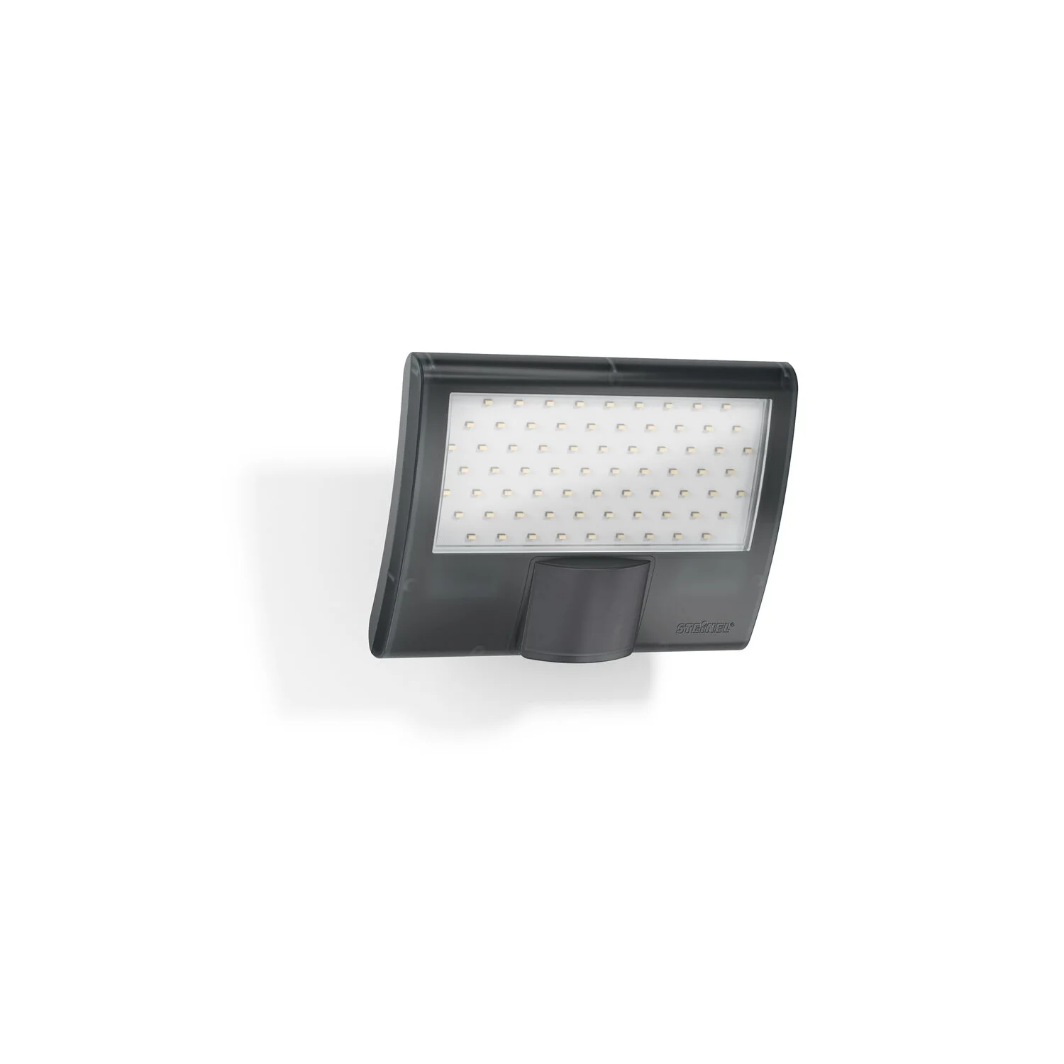Leuchtendes Kompaktmodell. Der Sensor-LED-Strahler XLED curved mit 9 W, kompakte und unauffällige Lichtlösung für Hauseingänge, Zugangswege & Co., attraktive Lichtausbeute (690 lm) bei äusserst niedrigem Energiebedarf, bis zu 8 Meter Sensorreichweite, horizontaler Schwenkbereich bis +-30°.