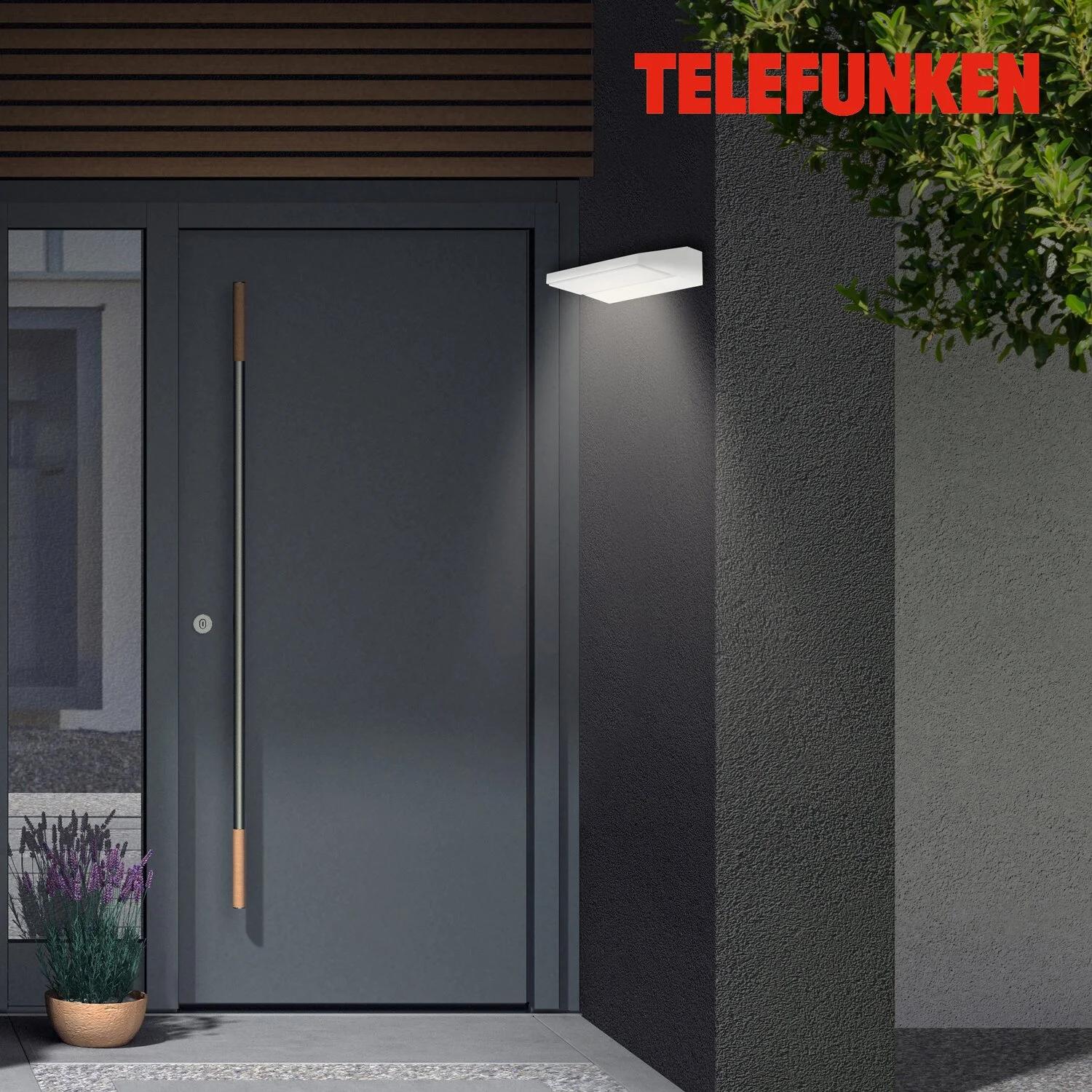 Die weisse Telefunken LED-Aussenwandleuchte Bergen macht sich super an jeder Hauswand. Die eingebaute LED-Platine bietet eine Leistung von 10 W und einen Lichtstrom von 1’100 lm. Mit einer Farbtemperatur von 4’000 K strahlt sie ein angenehm neutralweisses Licht aus. Der Kopf der Leuchte ist um 300 ° drehbar, was eine hohe Flexibilität für den Anwendungsbereich bietet. Dank Schutzart IP44 ist sie vor Spritzwasser gut geschützt.