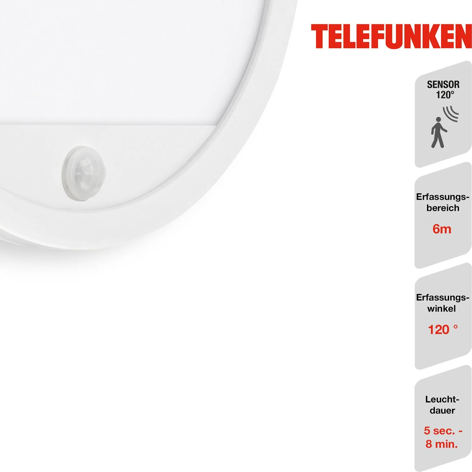 Die weisse Telefunken LED-Aussenleuchte Nizza ist trotz ihres schlichten Designs durch den sogenannten Backlight-Effekt ein echter Hingucker. Dadurch erstrahlt nicht nur die Leuchtfläche in einem angenehm neutralen Weiss, sondern auch die Wand, auf der die Leuchte montiert wird. Die Leuchte verfügt über einen Dämmerungssensor sowie einen eingebauten Bewegungssensor mit einem Erfassungsbereich von 6 m und einem Erfassungswinkel von 120 °. Die Leuchtdauer kann beliebig zwischen 5 s und 8 min eingestellt werden. Die Leuchte ist mit einem dazu passenden Hausnummern-Set individualisierbar. Dank Schutzart IP44 ist die Aussenleuchte spritzwassergeschützt und kann bedenkenlos im Aussenbereich montiert werden.
