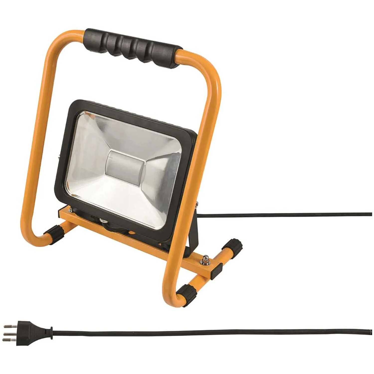 Der Worklight LED Strahler 20 W mit Traggriff, verbraucht bedeutend weniger Energie als herkömmliche Arbeitsleuchten mit Fluoreszenzröhre oder Glühlampe. Die Lebensdauer der LED beträgt ca. 20’000 Betriebsstunden. Die Lampe in schwarz-gelb ist vielseitig einsetzbar im Haushalt, Hobby, Werkstatt, Autogewerbe, Industrie usw. Zudem ist sie gegen Staub und Spritzwasser geschützt (IP65) und mit einem 5 m langen Kabel ausgestattet.