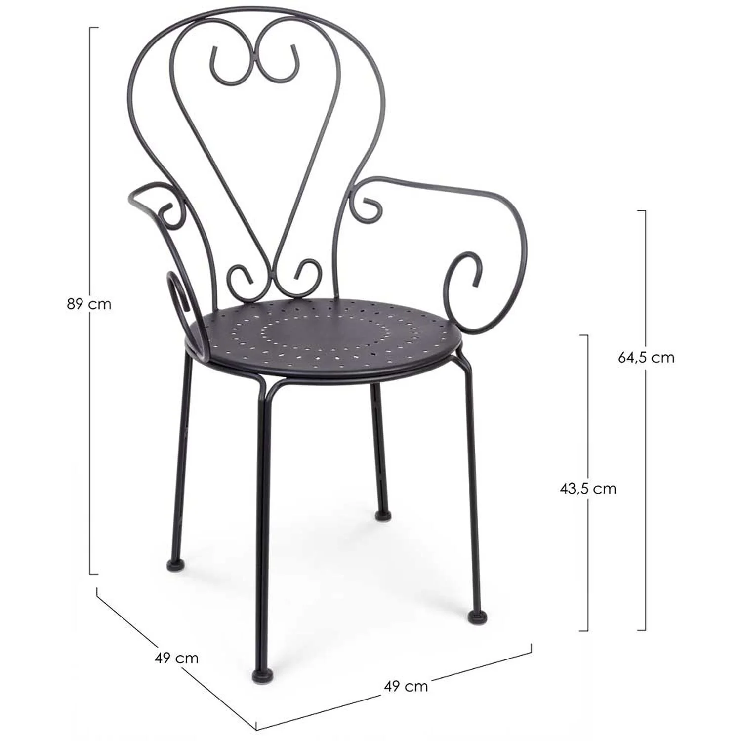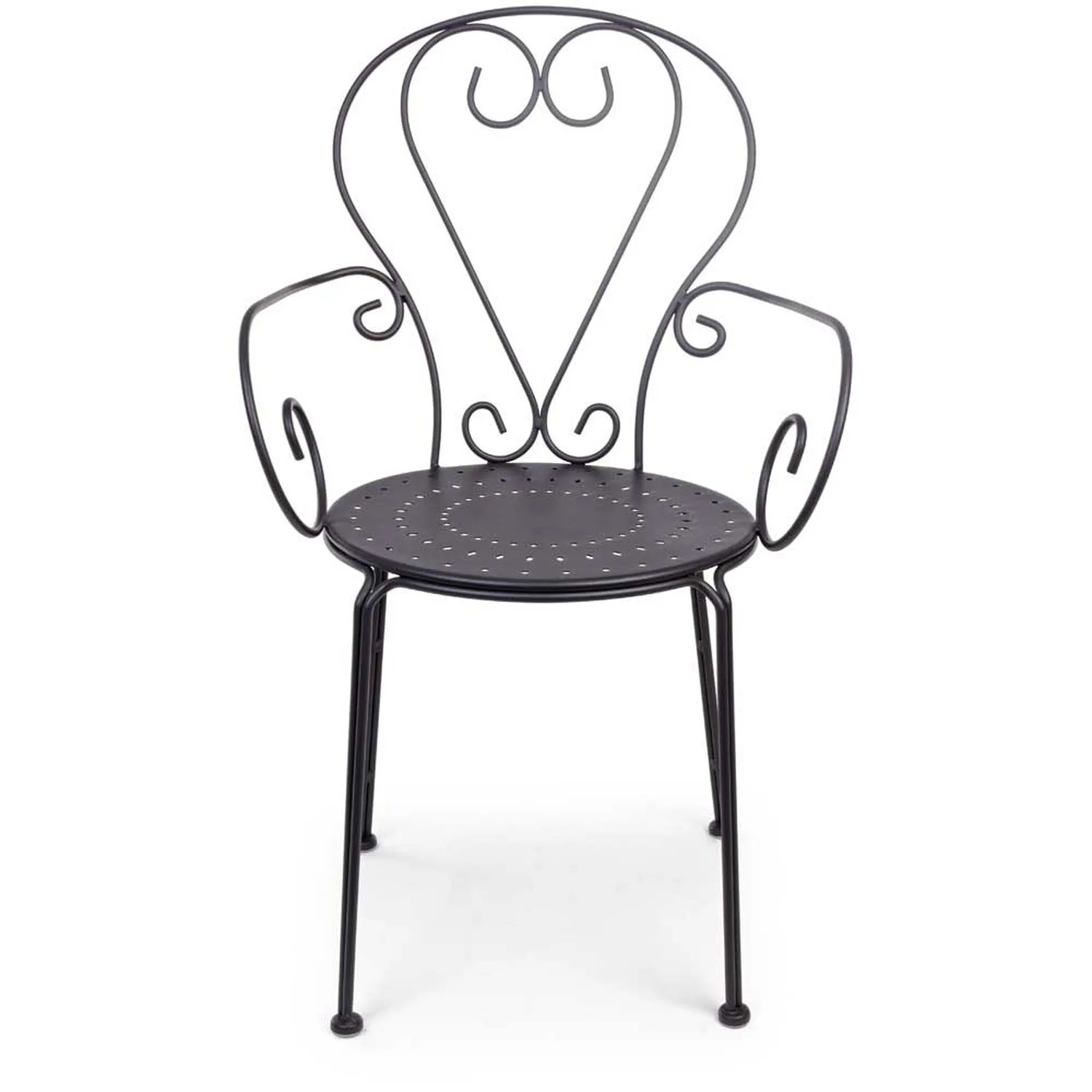 Der Gartenstuhl Etienne von Yes lädt zu gemütlichen und geselligen Stunden im Freien ein. Er lässt sich ideal auf kleinen Balkonen und Terrassen platzieren. Mit seinem verspielten und romantischen Design, das sich durch Verschnörkelungen am Rücken und den Armlehnen auszeichnet, ist der Stuhl ein optisches Highlight in jedem Aussenbereich. Dank seiner schlichten Farbe in Anthrazit lässt er sich vielseitig kombinieren. Für Langlebigkeit und Stabilität besitzt das Gartenmöbel ein robustes Stahlgestell, dessen Oberfläche pflegeleicht und witterungsbeständig ist. Da der Gartenstuhl stapelbar ist, kann er nach der Verwendung platzsparend aufbewahrt werden. Belastbar ist er bis maximal 135 kg. Die Gesamtmasse betragen (HxBxT) 89 x 49 x 49 cm.