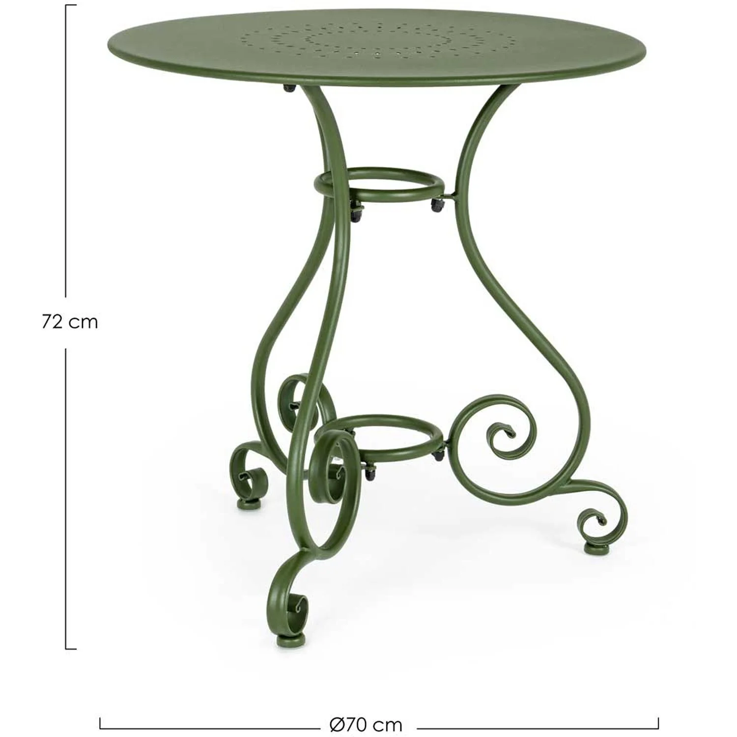 Der Gartentisch Etienne von Yes ist ein attraktiver Blickfang in jedem Aussenbereich und eignet sich perfekt für ein gemeinsames Frühstück oder entspannte Kaffeerunden. Da er nicht viel Stellfläche einnimmt, lässt er sich ideal auf kleinen Balkonen platzieren. Mit seinem romantisch-verspielten Design in Anthrazit und dem verschnörkelten Gestell verleiht der runde Tisch jedem Balkon das besondere Etwas. Hergestellt ist das Gestell aus hochwertigem und robustem Stahl. Auch die Tischplatte punktet mit Stabilität und besteht aus Metall. Der Gartentisch hat eine maximale Belastbarkeit von 50 kg. Seine Höhe beträgt 72 cm und die Tischplatte hat einen Durchmesser von 70 cm.